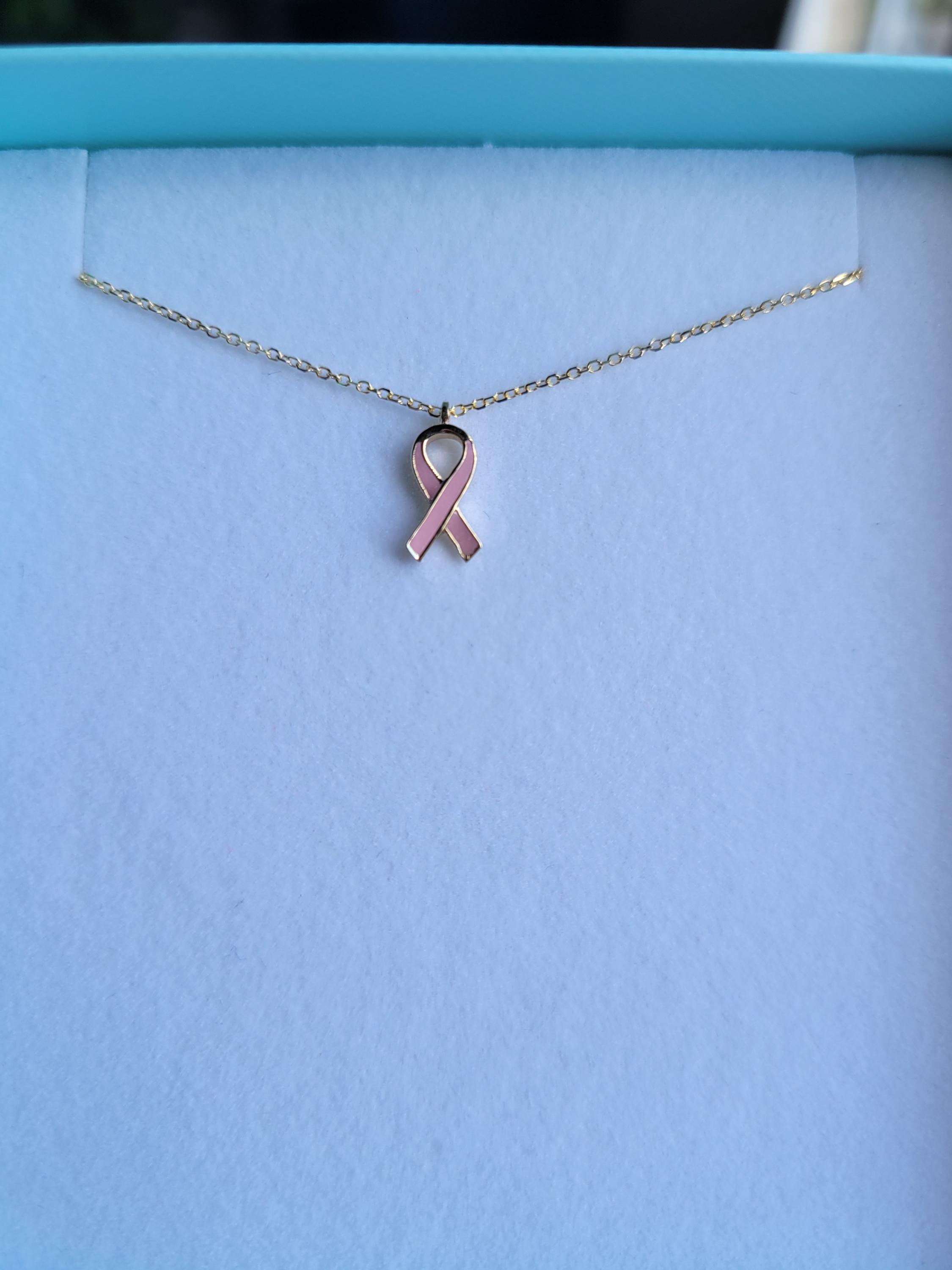 October is Breast Cancer Awareness Month, and our daughter~in~L💗VE has had one hell of a year, actually almost 2 years. This gift was a little something we want to know she could feel our love & hope without some big hunk of jewelry. We wanted it to seem like it wa a part of her body. This necklace was perfect! Very dainty & almost “not there’ll, unto she eyed the tint pink ribbon. The 15” 14K gold chain was perfect for her tiny neck. She loved it, and we are thankful for all the correspondence we had to make this the perfect beautiful gift.