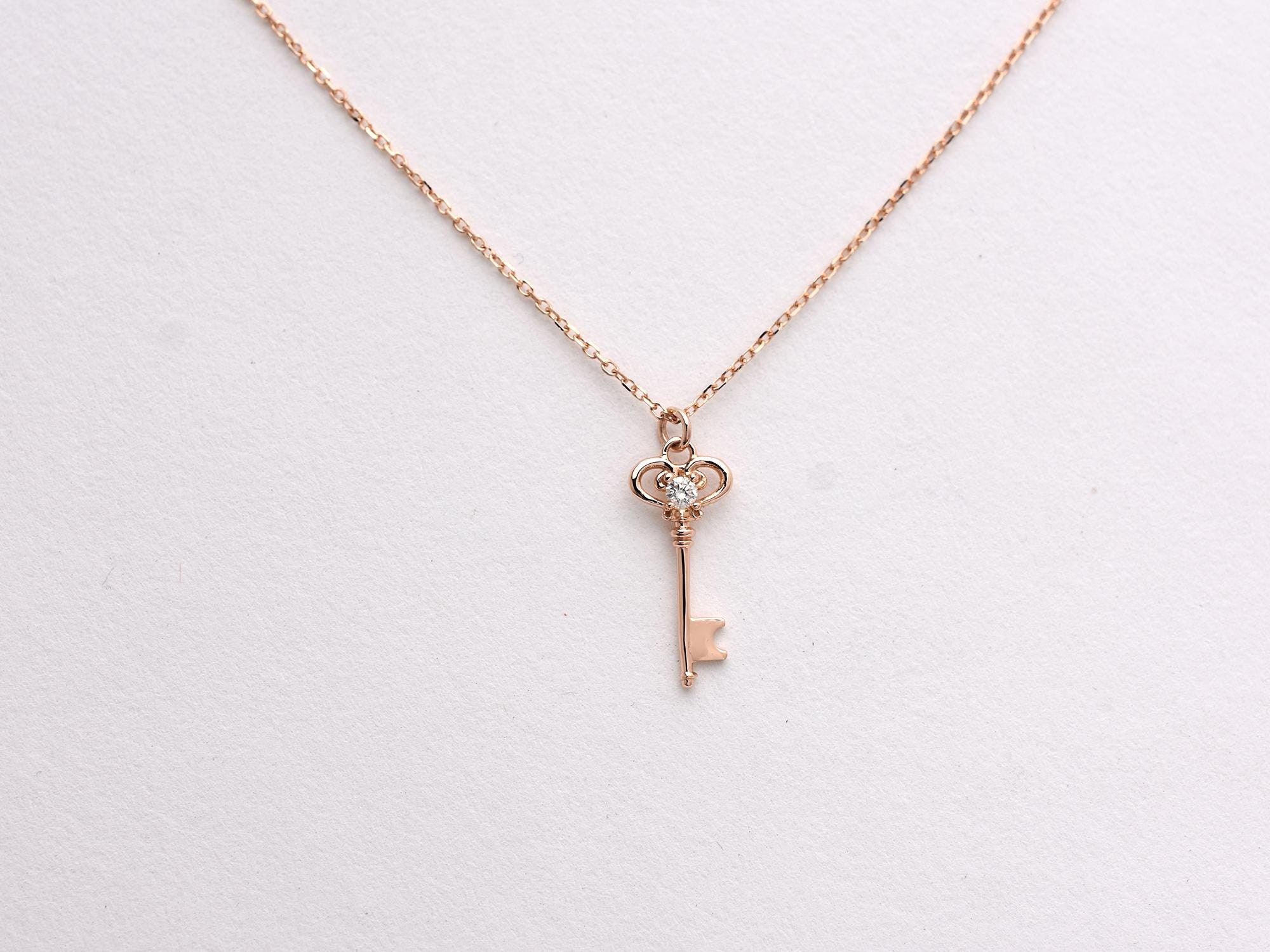 HANDMADE SOLID 14K YELLOW GOLD MINI KEY NECKLACE WITH NATURAL DIAMOND SI1 CLARITY G COLOR. I MAKE THIS PENDANT ALSO IN 14K WHITE AND ROSE GOLD. THIS NECKLACE IS ALSO AVAILABLE IN VARIOUS LENGTHS. PLEASE SPECIFY COLOR GOLD AND LENGTH WHEN ORDERING. FREE SHIPPING WITHIN THE USA