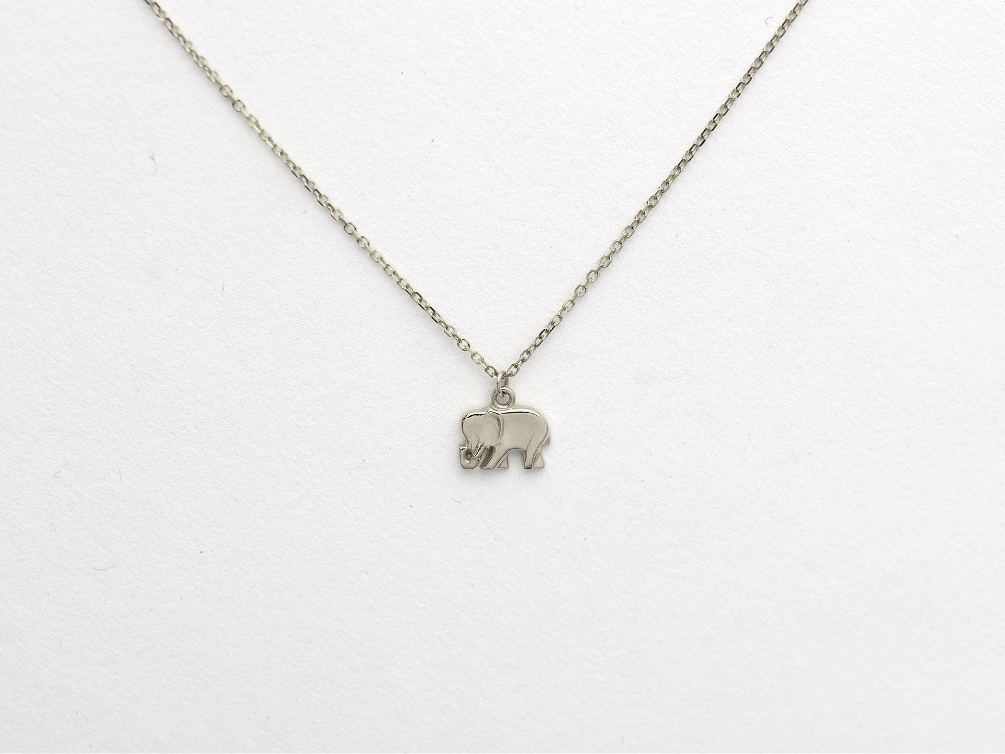 Handmade beautiful 14k solid white gold elephant necklace. Dainty and delicate elephant necklace perfect for everyday wear. The elephant is 14k solid gold with a diamond cut cable link chain with a sturdy lobster lock. please specify the color gold and length when ordering. if you dont see an option that you would like , please let me know. i will do my best to accommodate you. As always FREE shipping within USA