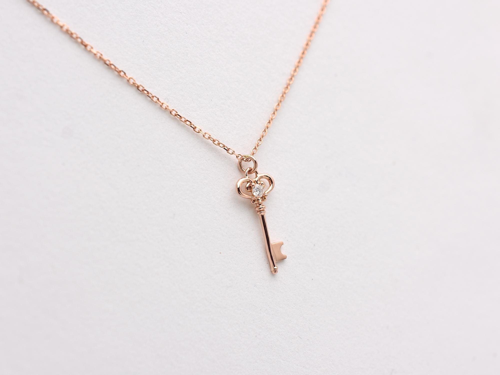 HANDMADE SOLID 14K ROSE GOLD MINI KEY NECKLACE WITH NATURAL DIAMOND SI1 CLARITY G COLOR. I MAKE THIS PENDANT ALSO IN 14K WHITE AND YELLOW GOLD. THIS NECKLACE IS ALSO AVAILABLE IN VARIOUS LENGTHS. PLEASE SPECIFY COLOR GOLD AND LENGTH WHEN ORDERING.FREE SHIPPING WITHIN THE USA
