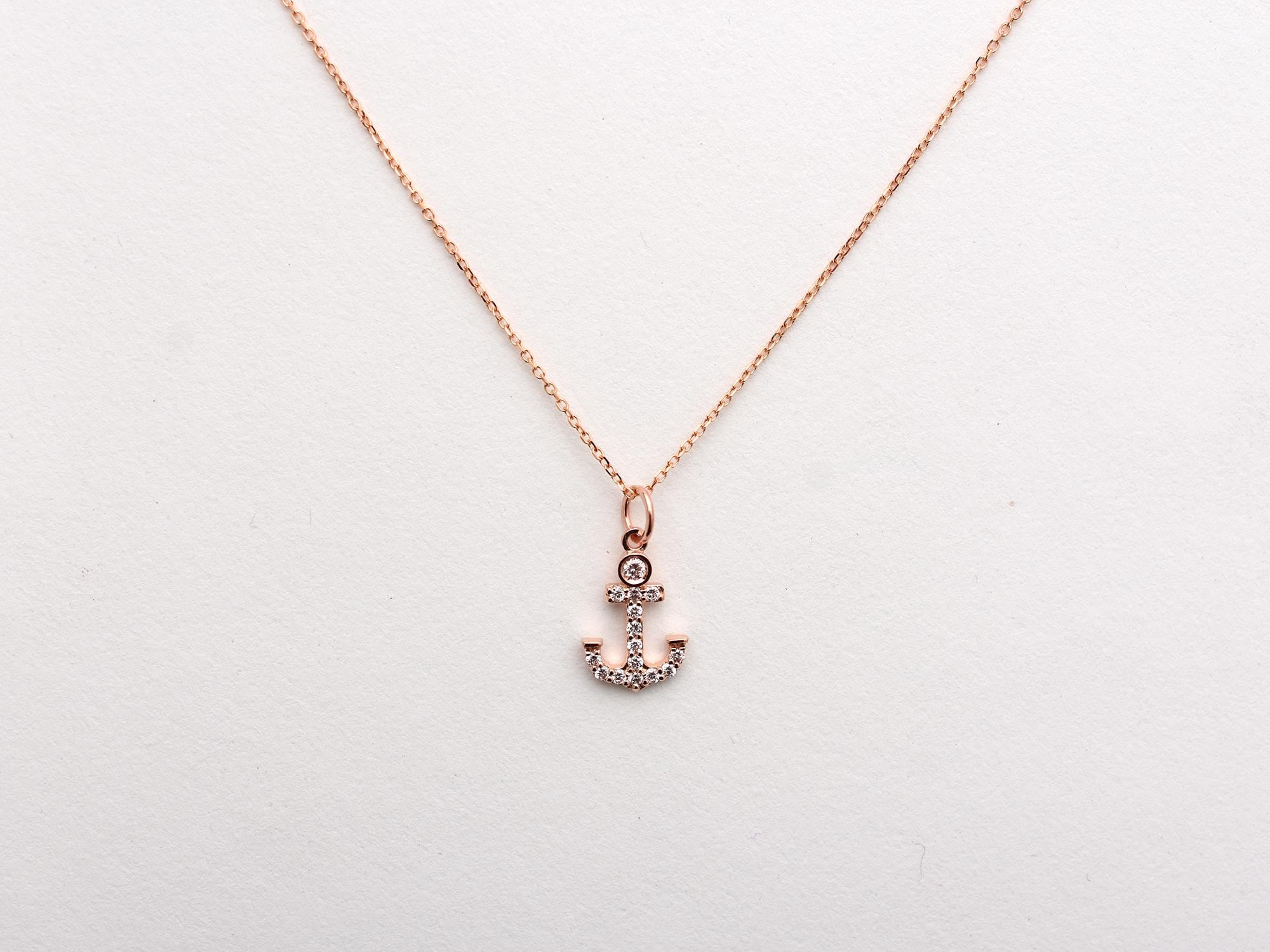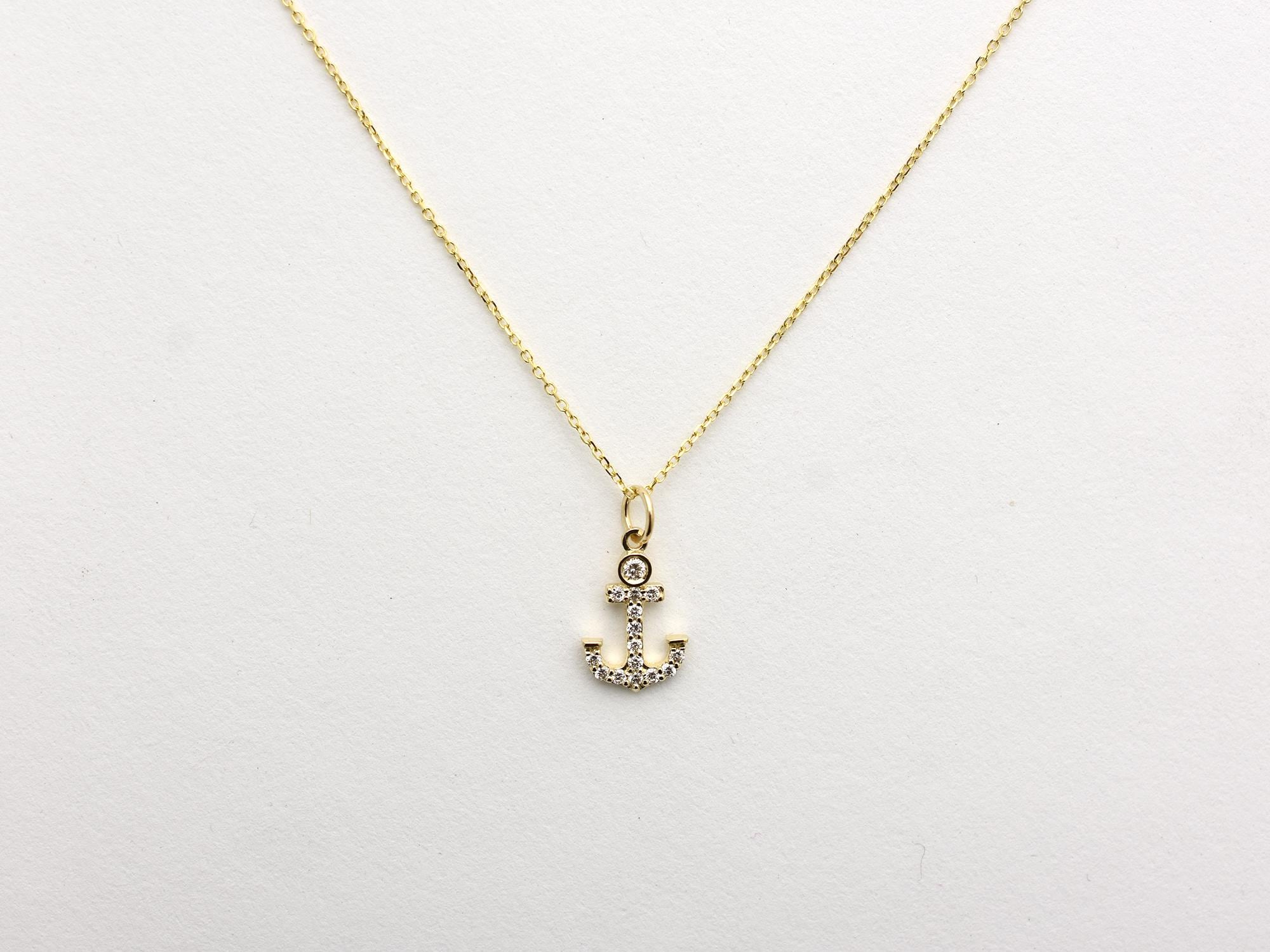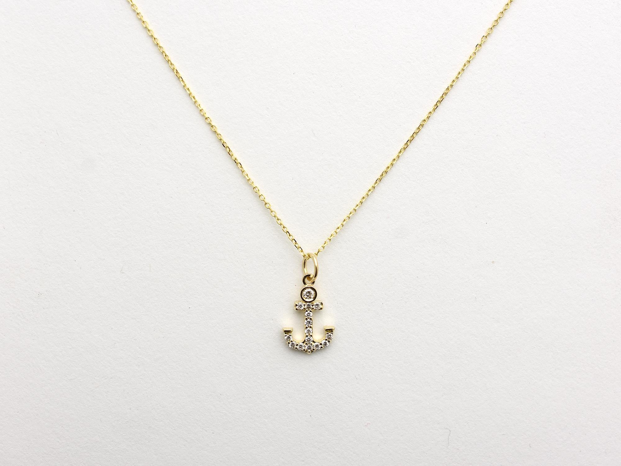 Diamond Anchor Necklace , this 14k solid Gold Diamond Anchor Necklace perfect for layering with other necklaces for an everyday look. Available with or without a 14k gold chain and in white gold , yellow gold , rose gold.