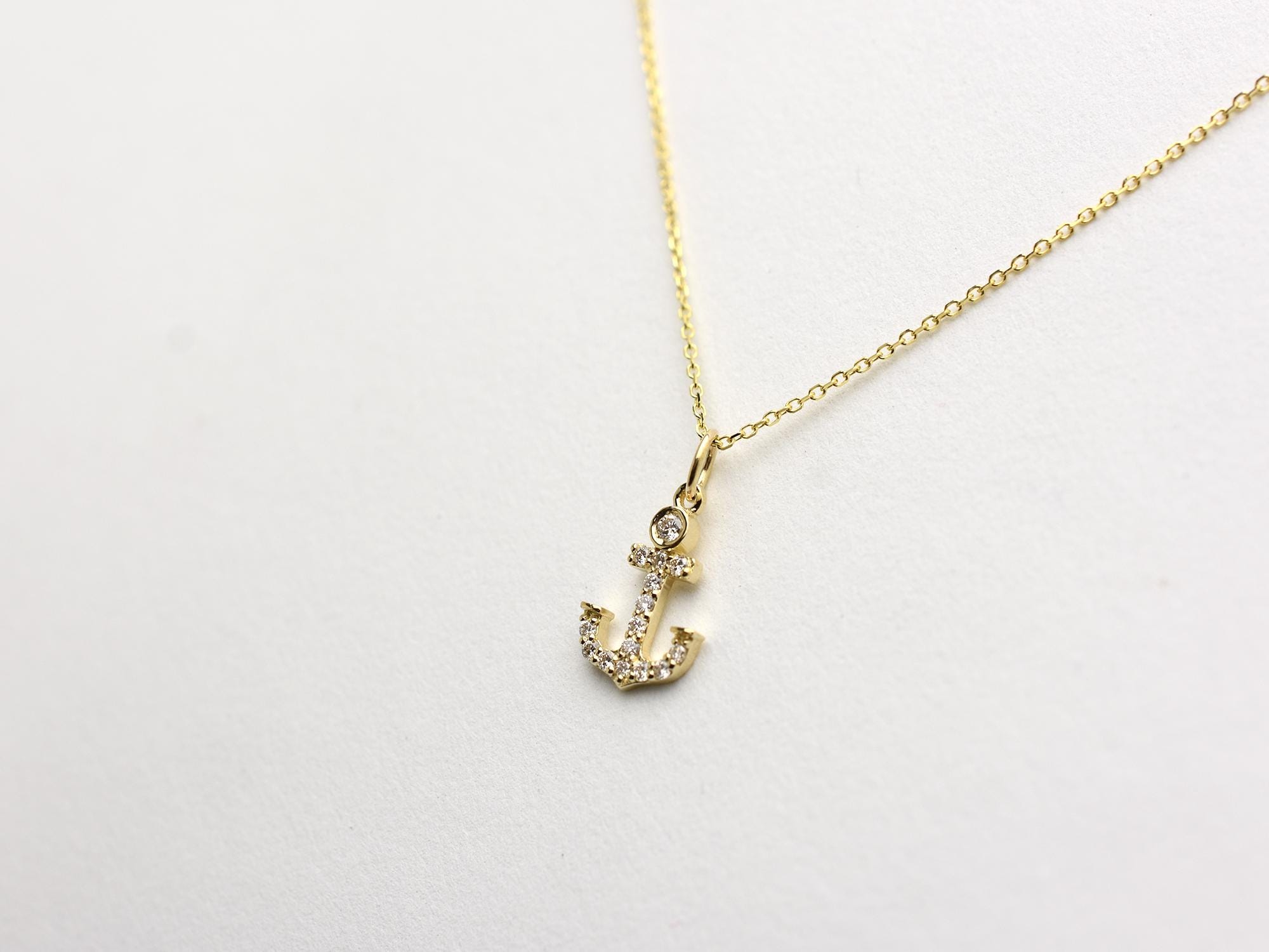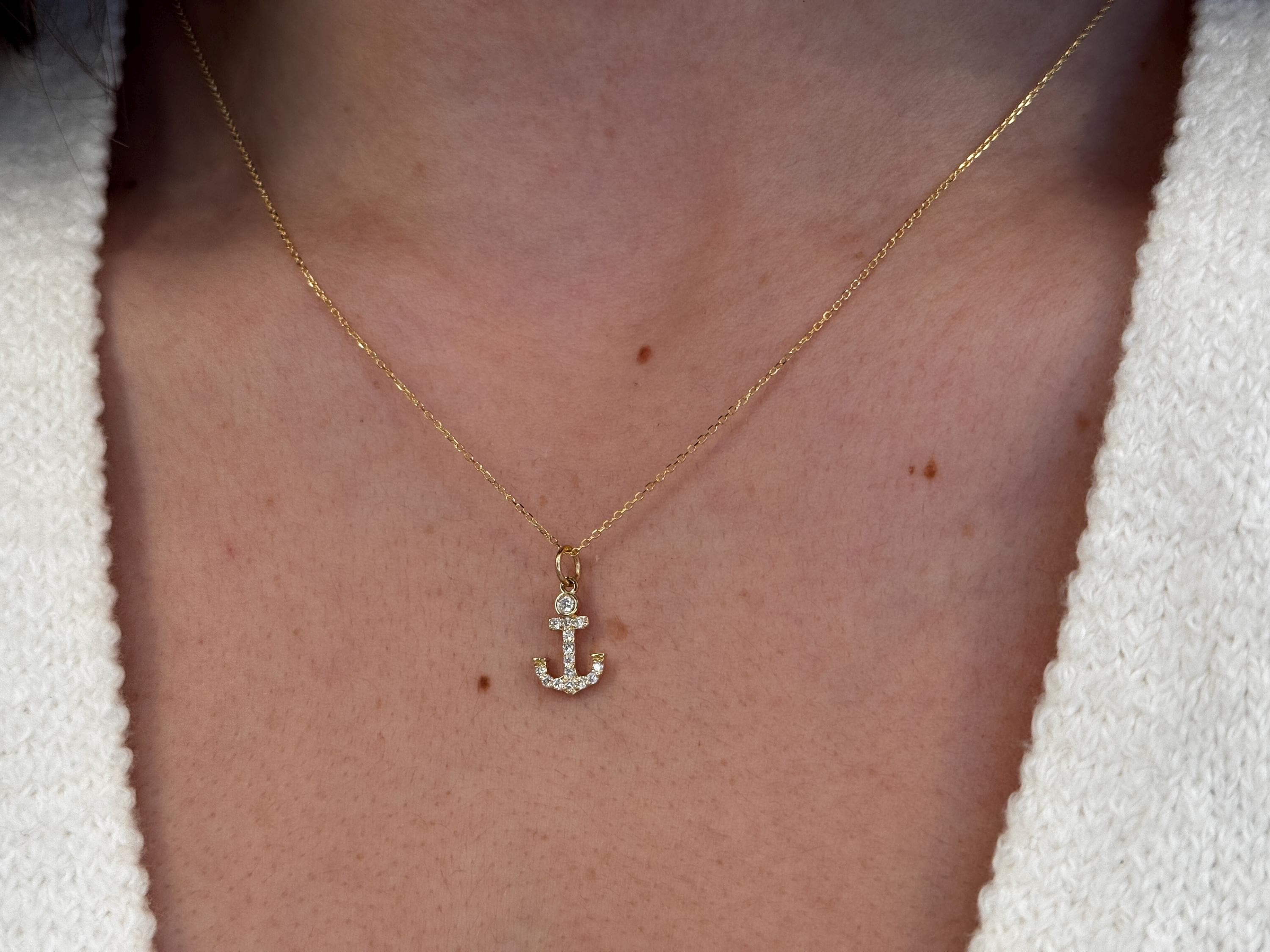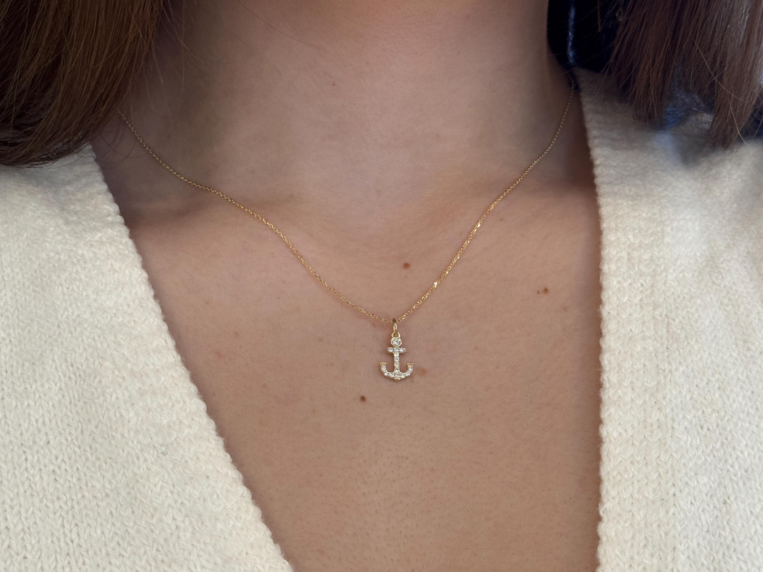Diamond Anchor Necklace , this 14k solid Gold Diamond Anchor Necklace perfect for layering with other necklaces for an everyday look. Available with or without a 14k gold chain and in white gold , yellow gold , rose gold.