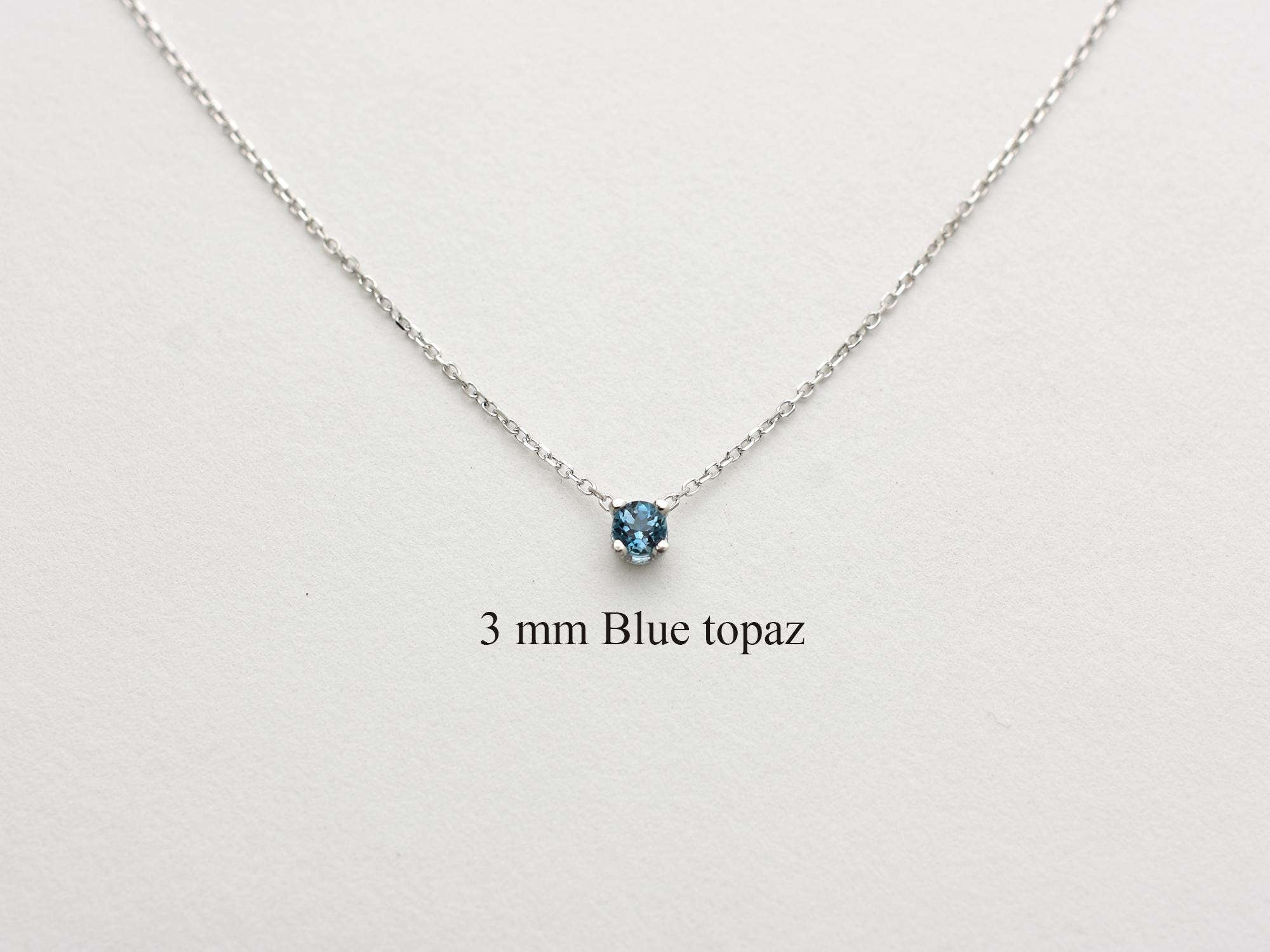 Blue Topaz Necklace 3 MM / 14k Gold Blue Topaz Necklace / Solitaire Blue Topaz Necklace / December Birthstone / Layering Blue topaz
