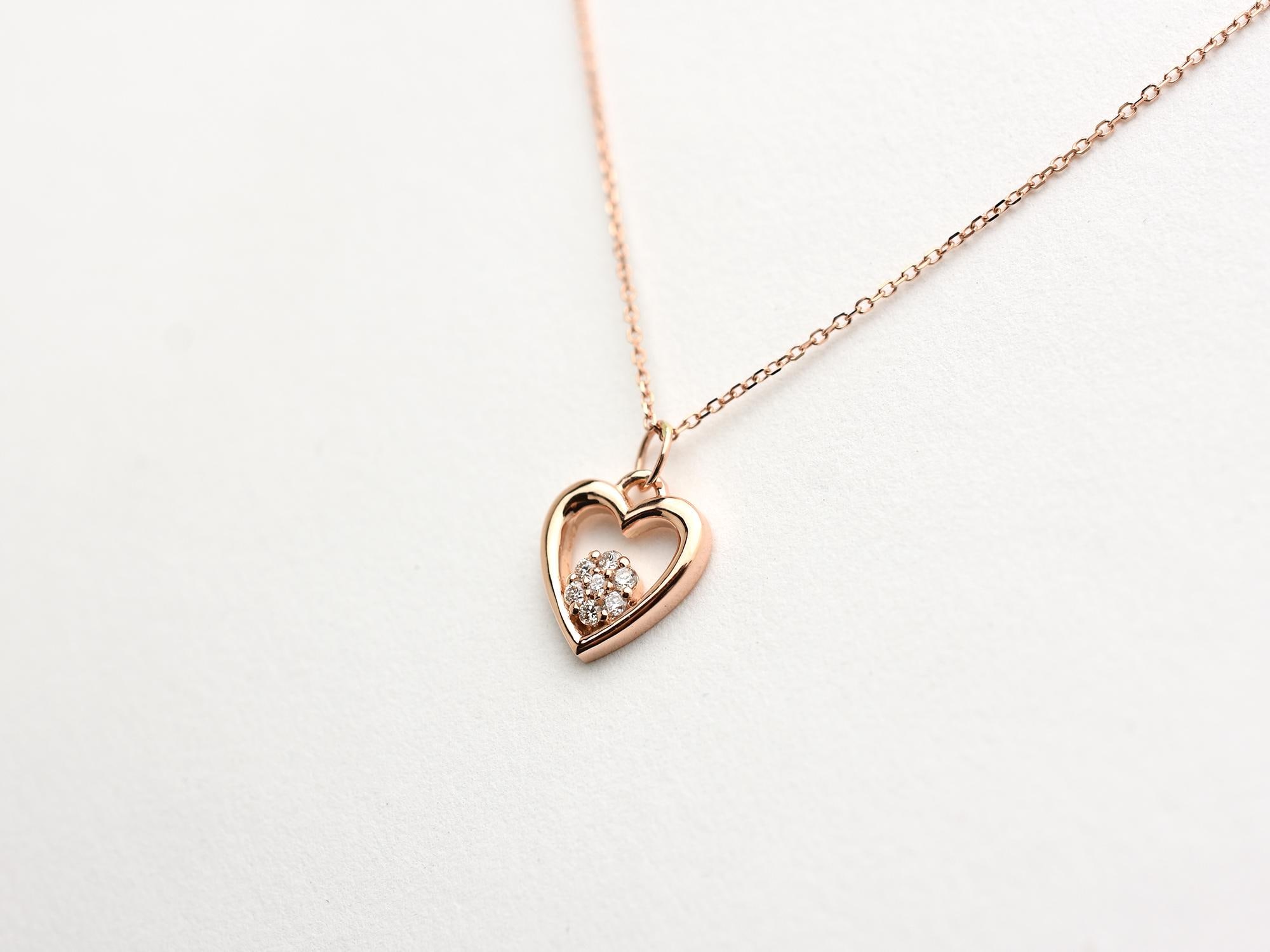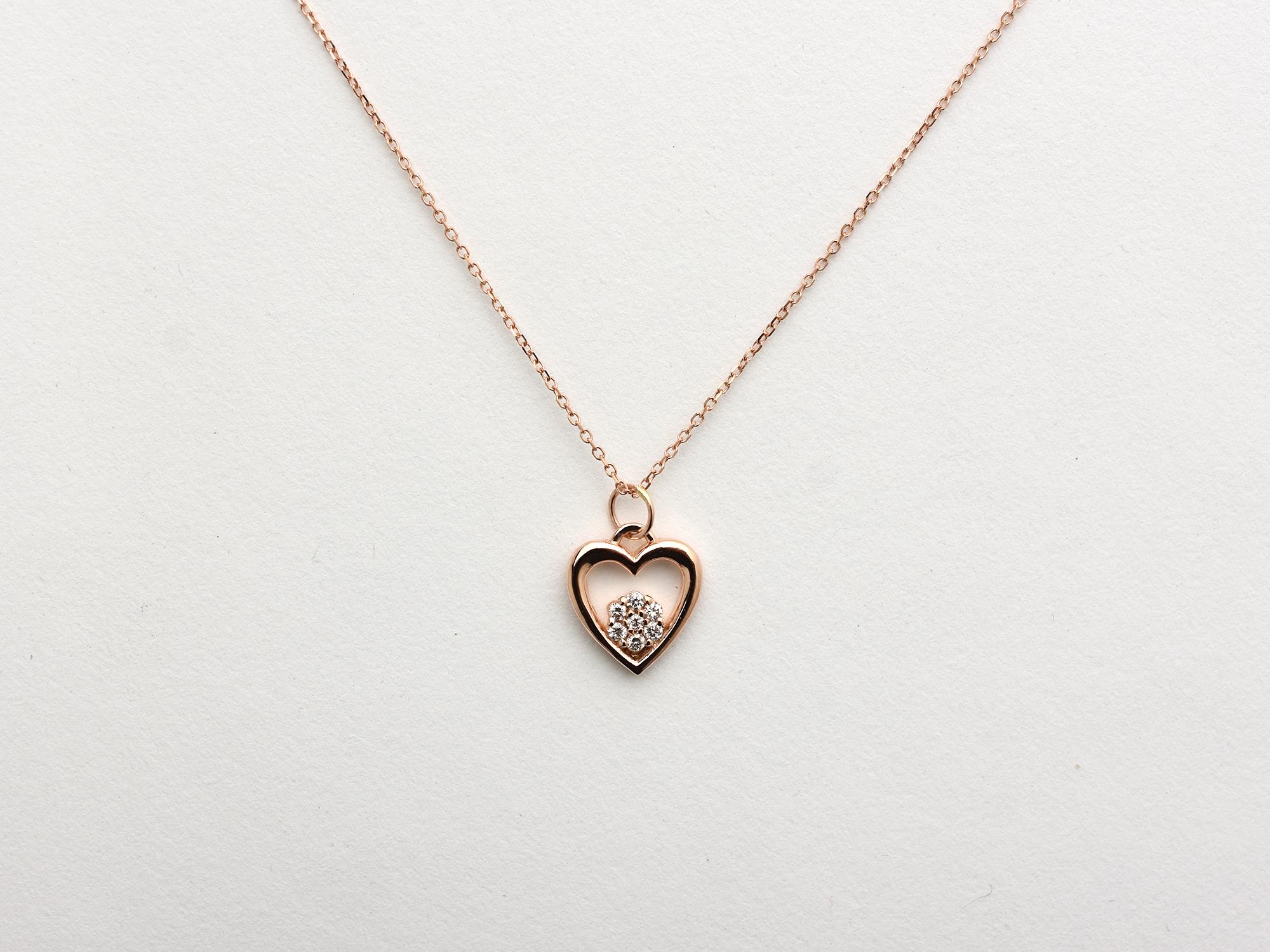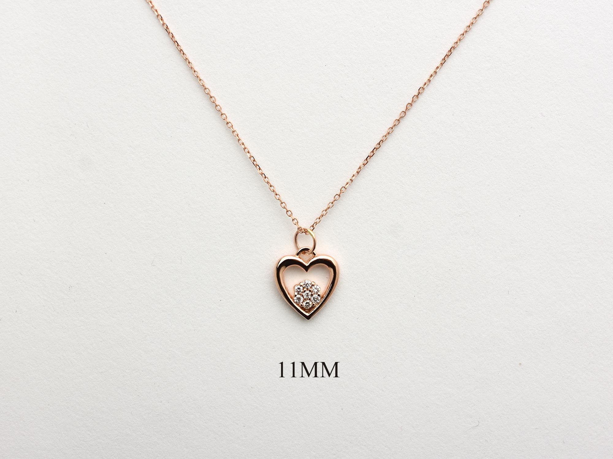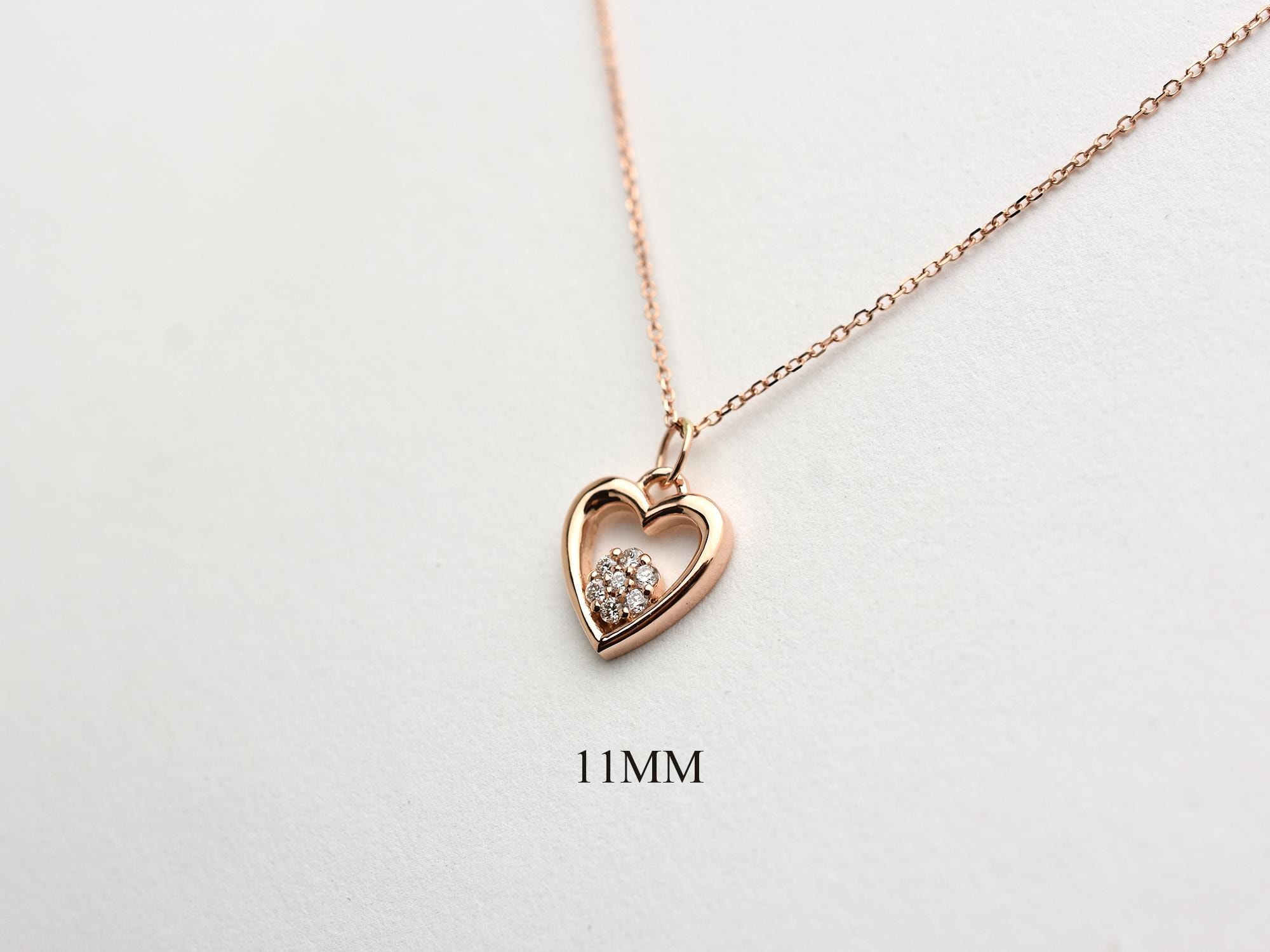 14k Rose Gold Diamond Heart Necklace: Dainty Handmade Pendant