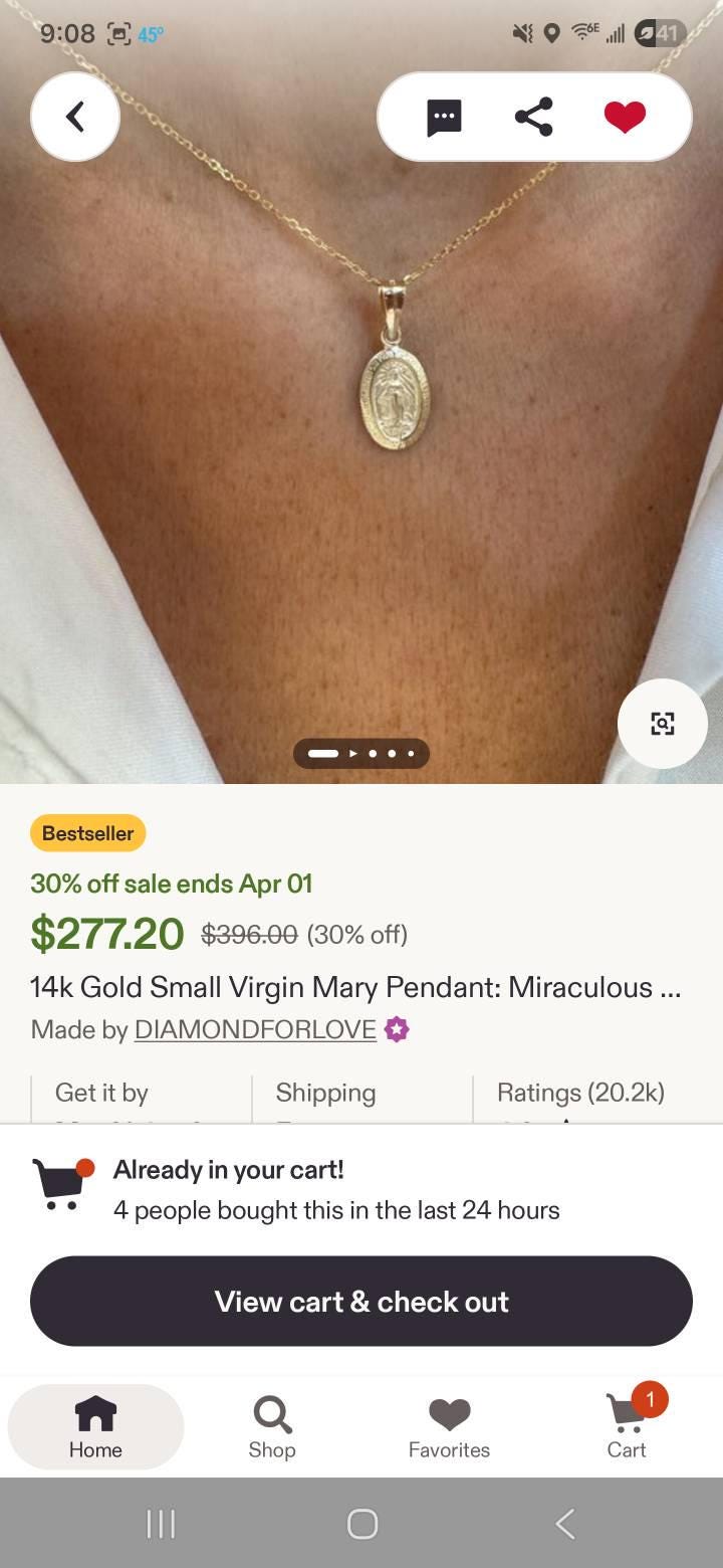 14K SOLID YELLOW GOLD Small VIRGIN MARY MEDALLION Pendant.