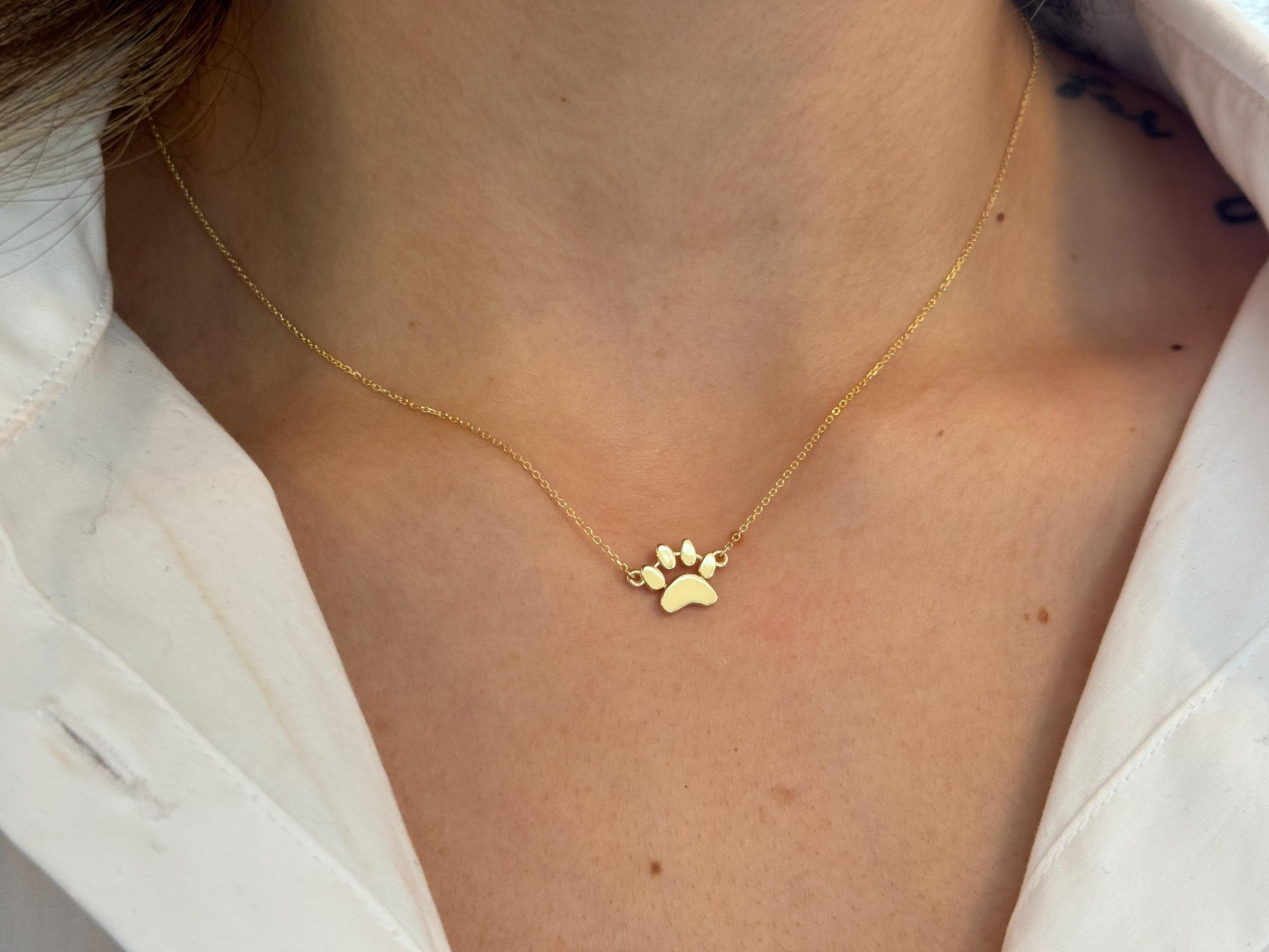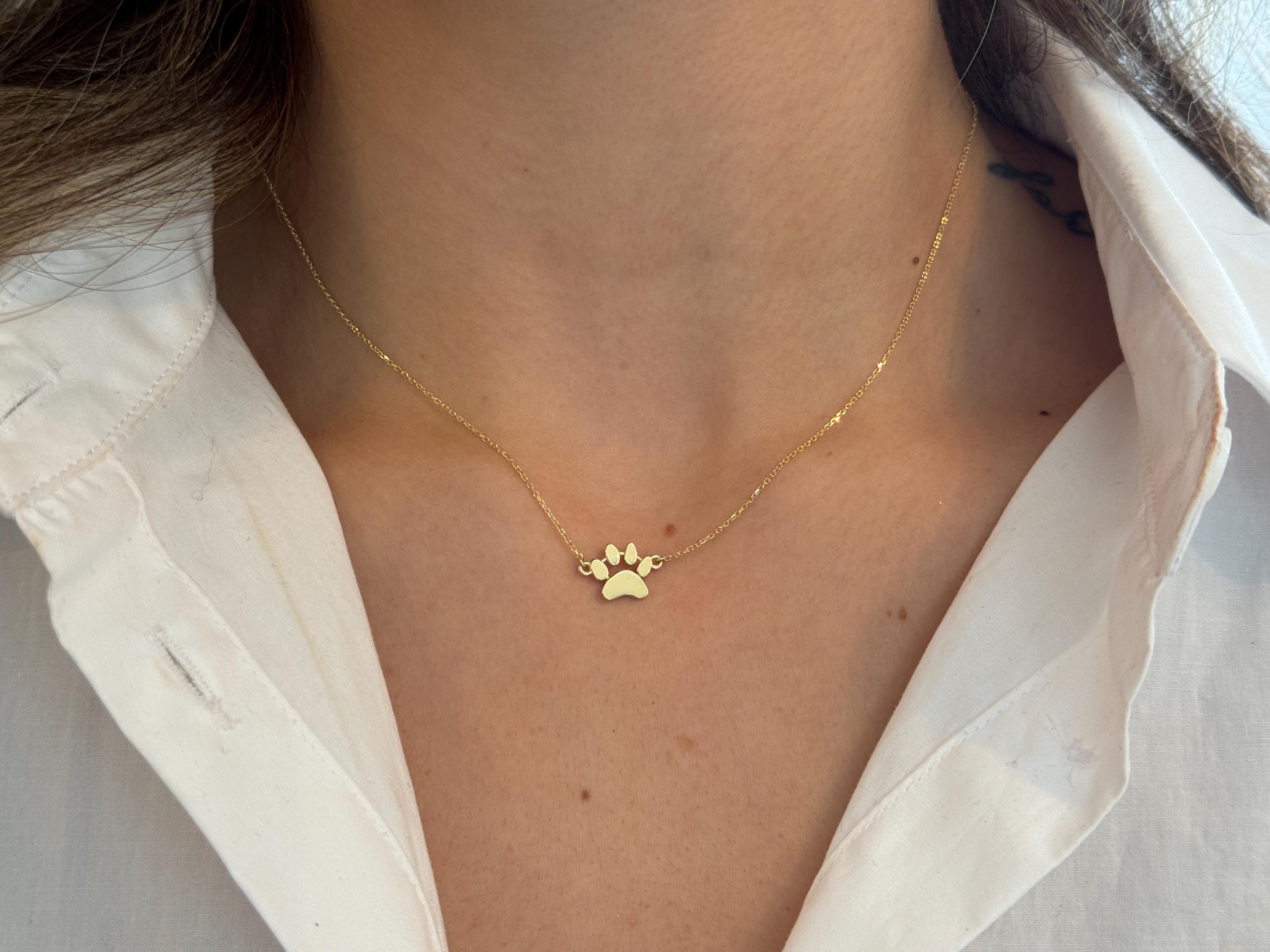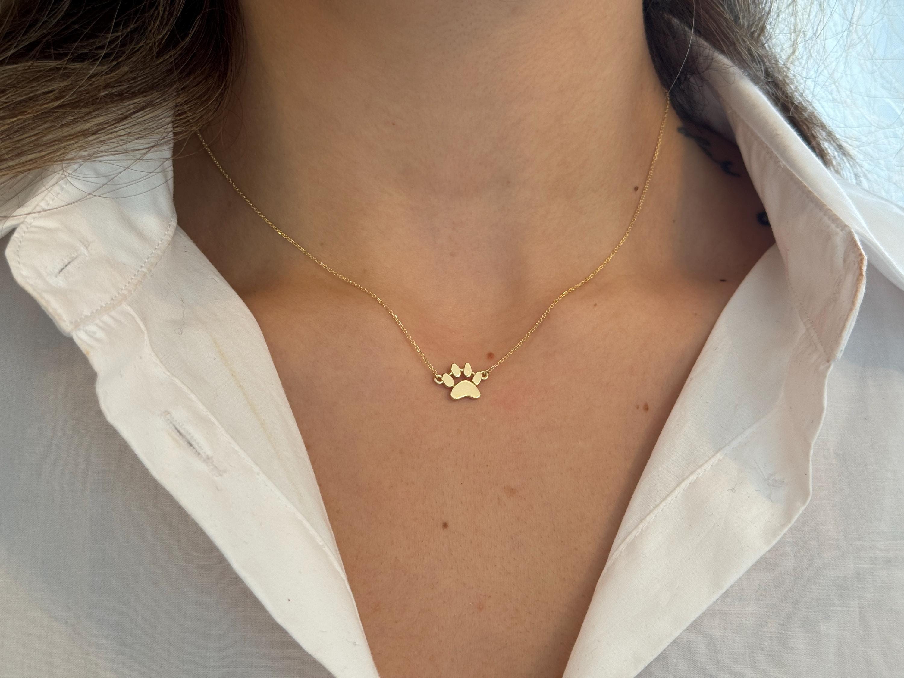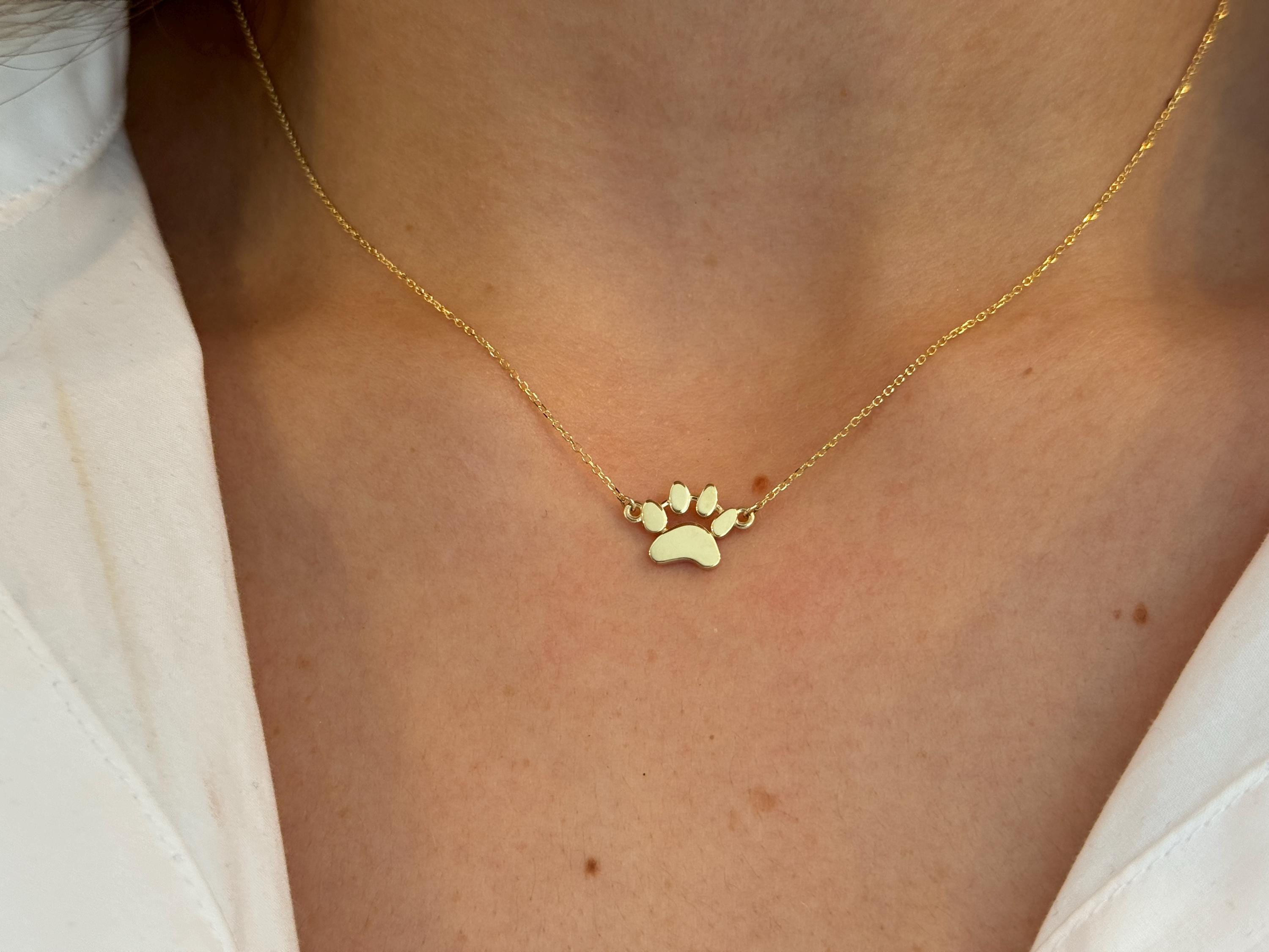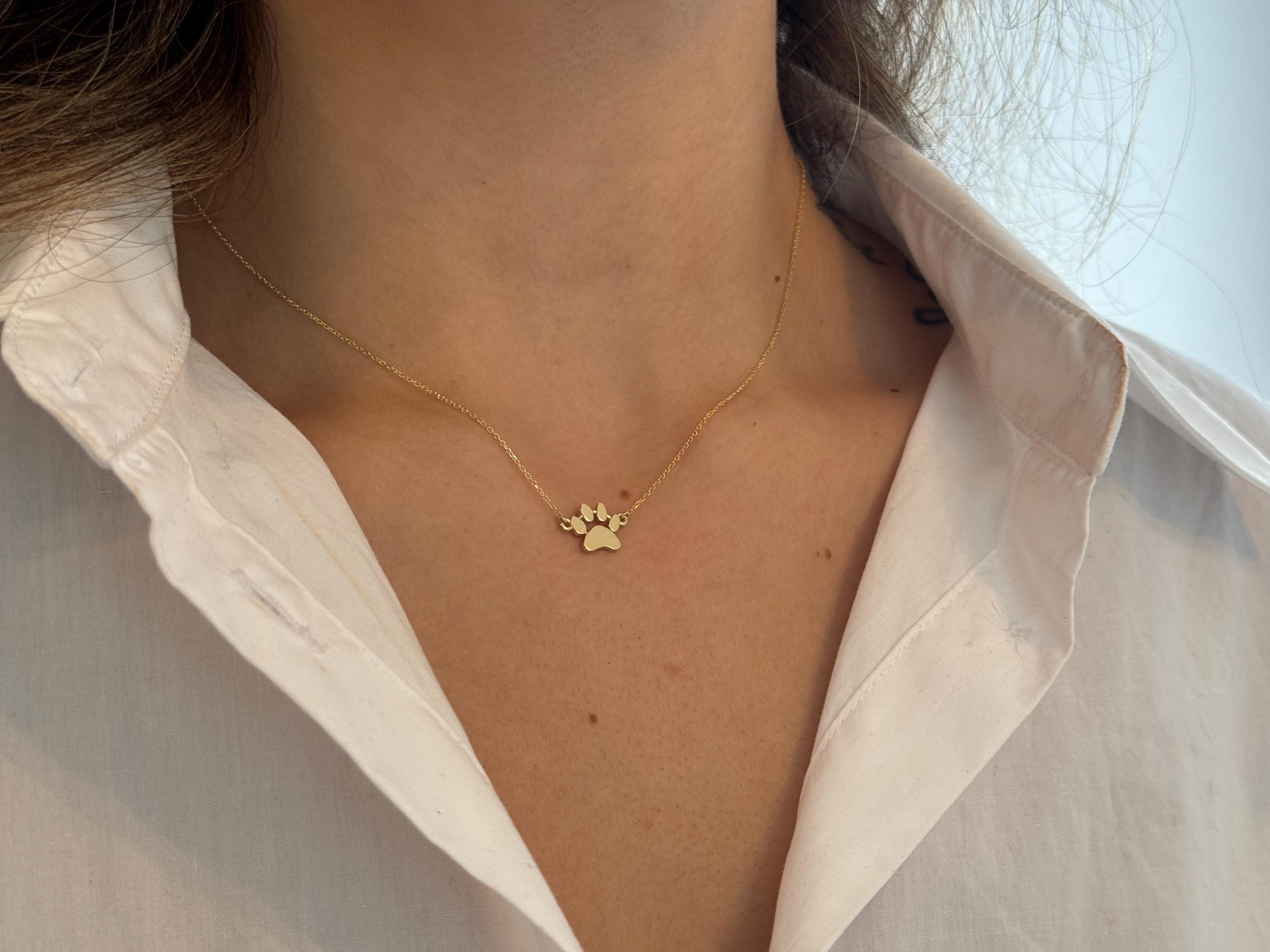 Paw Print Necklace / 14k Gold Paw Print Necklace / Solid Gold Pet Paw Necklace / Favorite Pet Paw Print Necklace