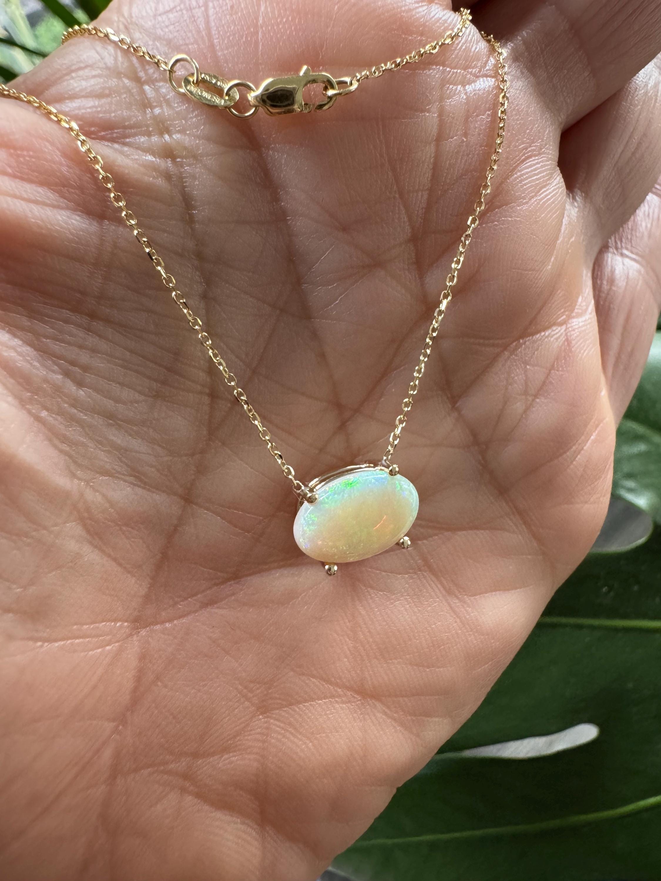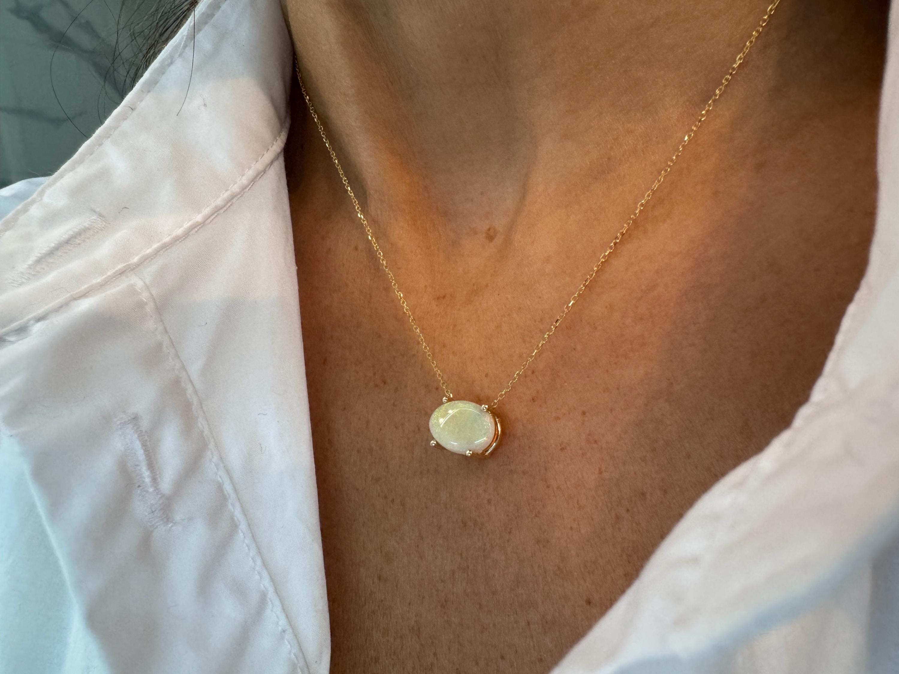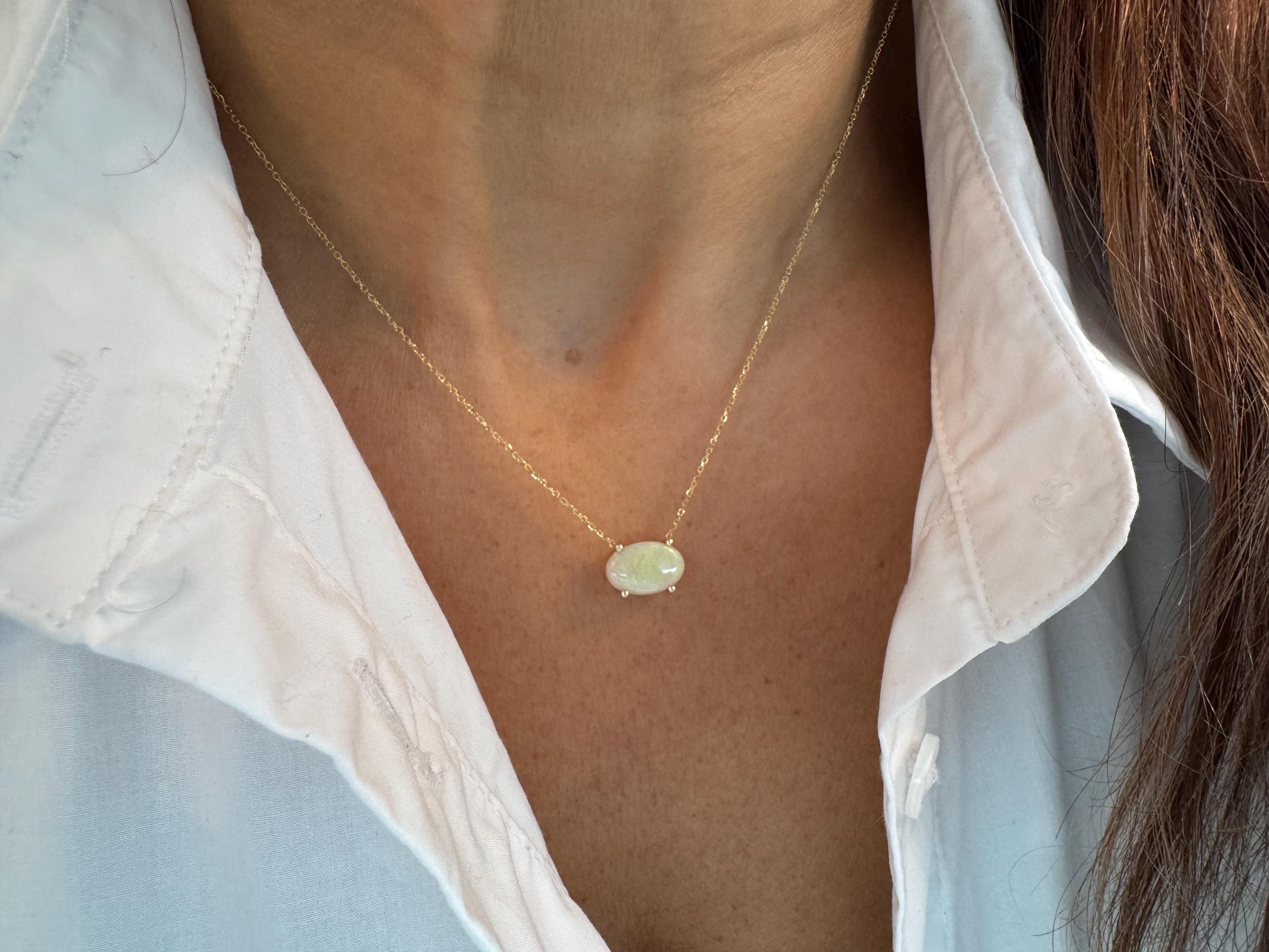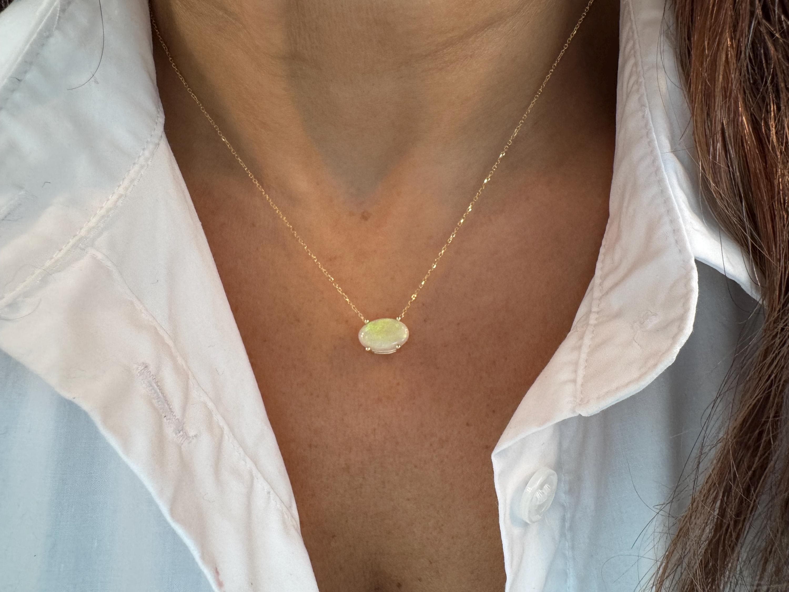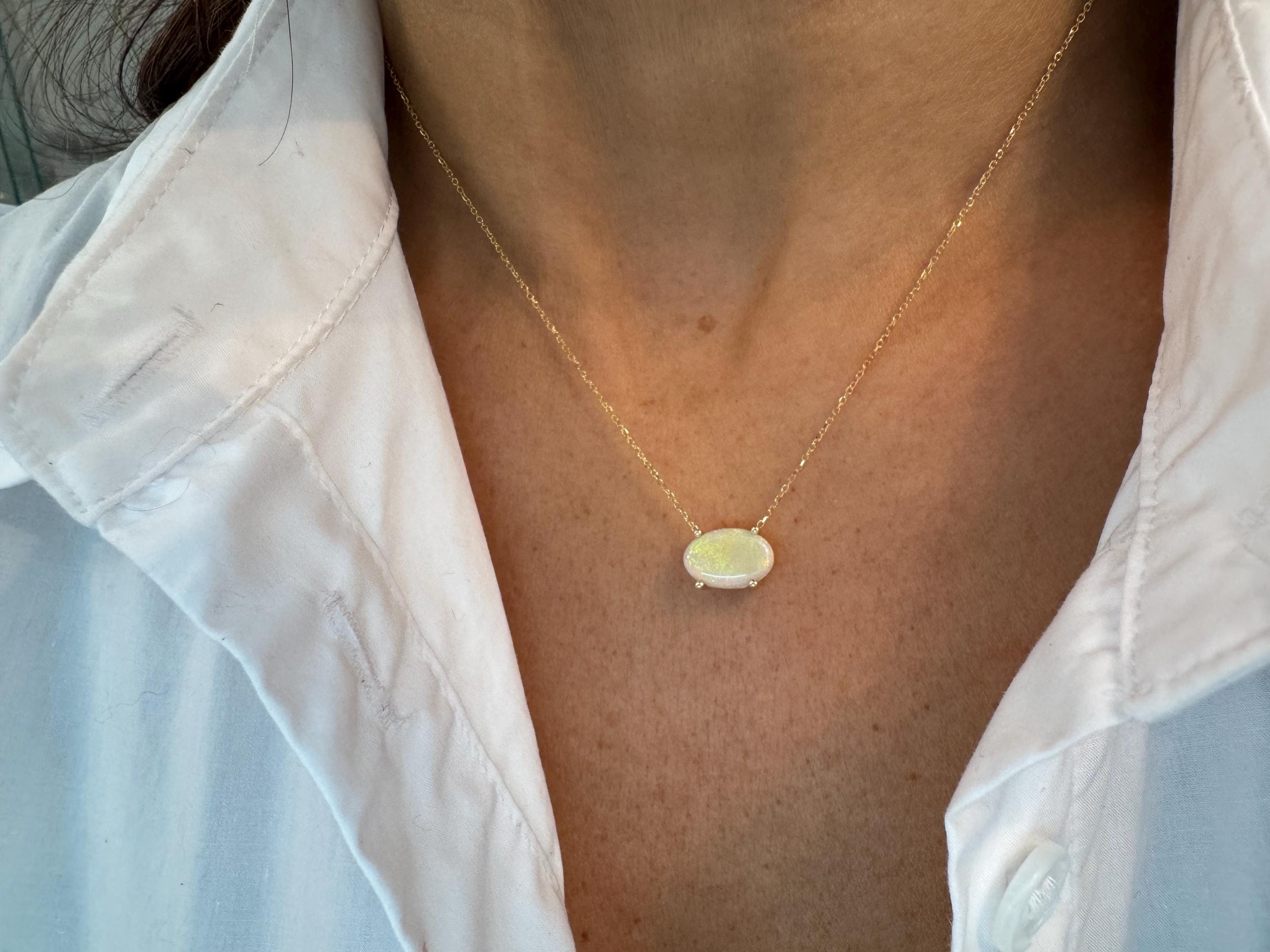 Elevate your everyday look with this breathtaking, handcrafted 14k Solid Gold Opal Necklace. Featuring a stunning, high-grade AAA quality natural Australian Opal, this piece is the ultimate blend of minimalist luxury and vibrant color. The perfect necklace to wear daily or to give as an unforgettable gift.