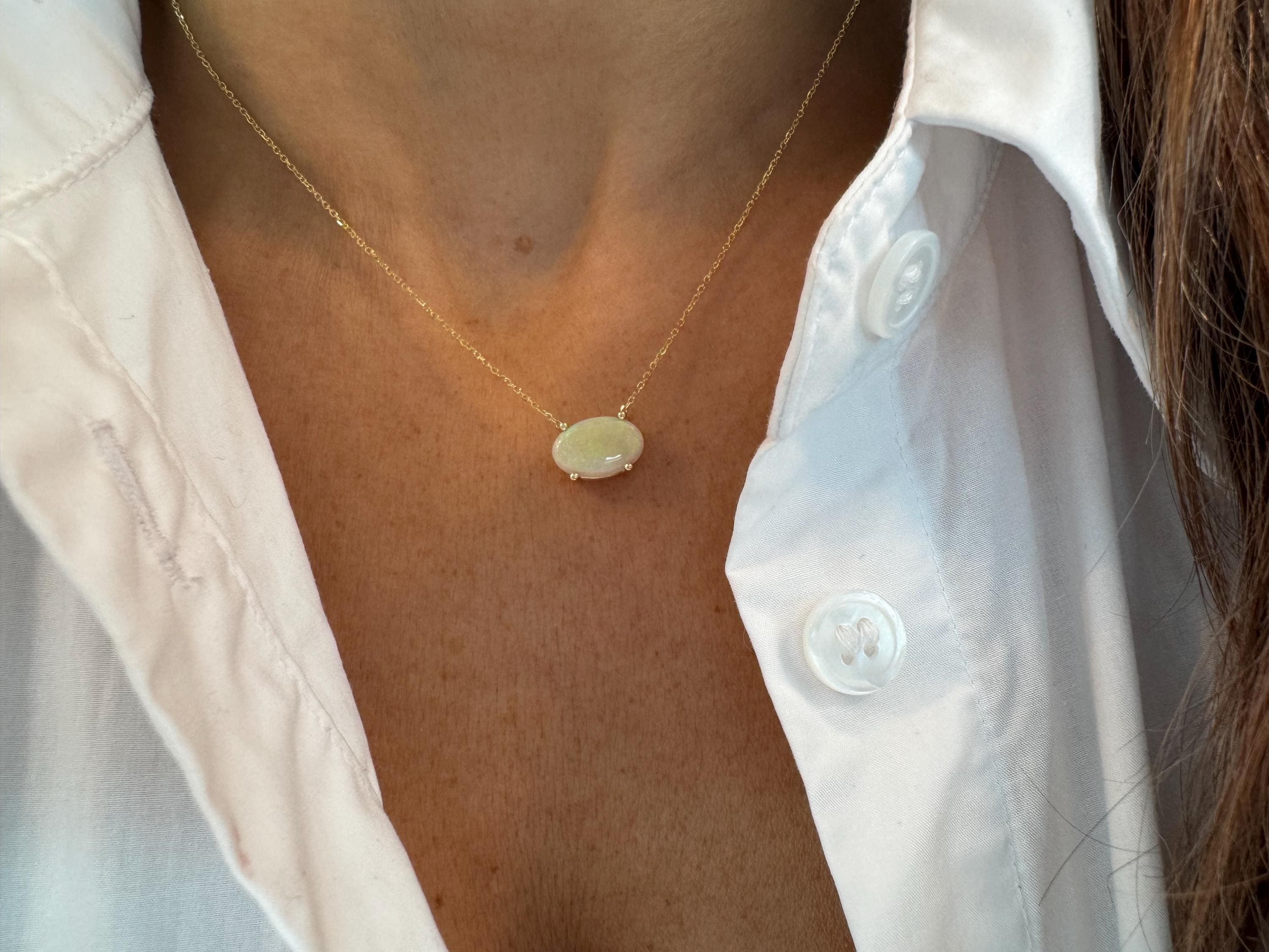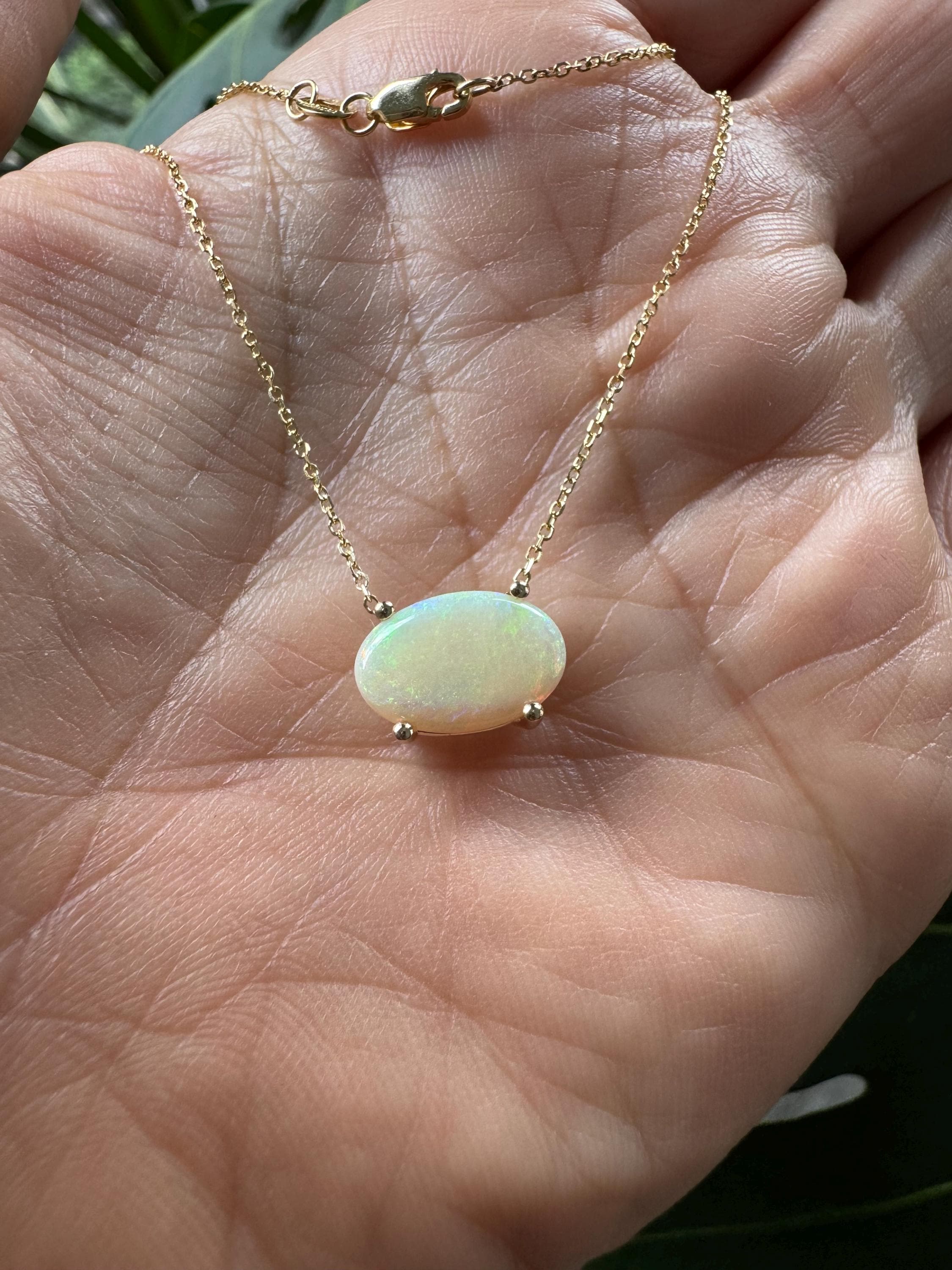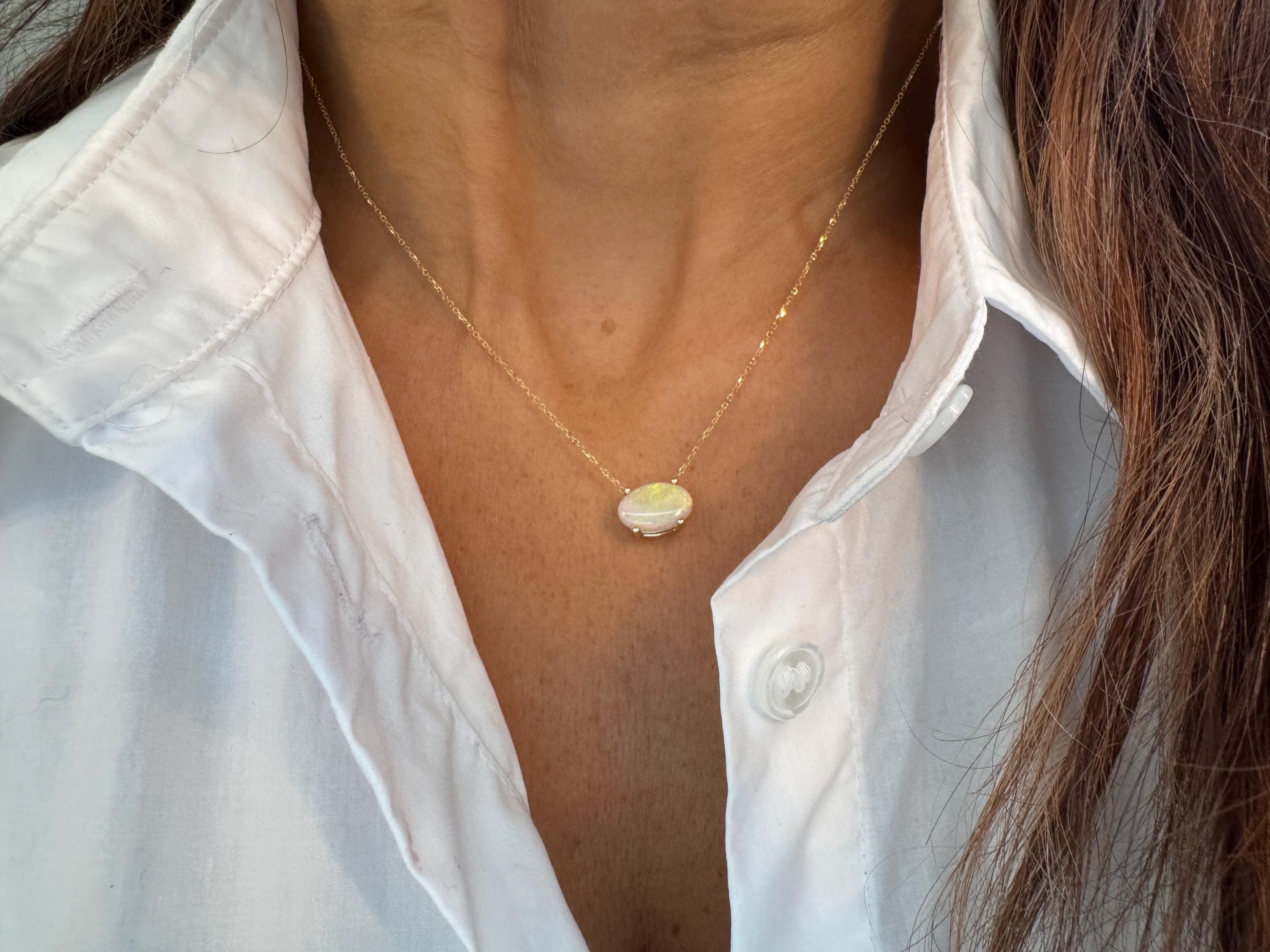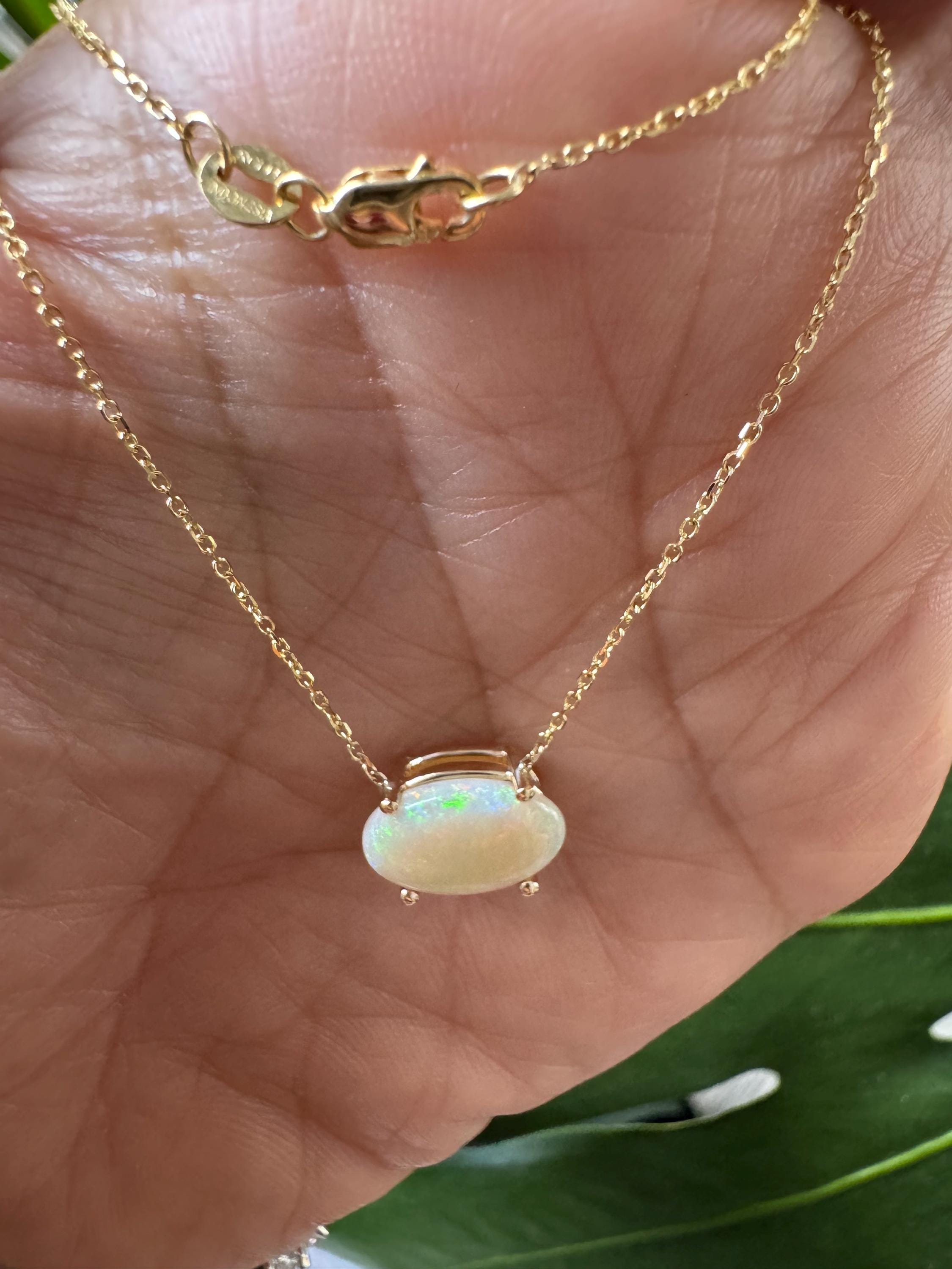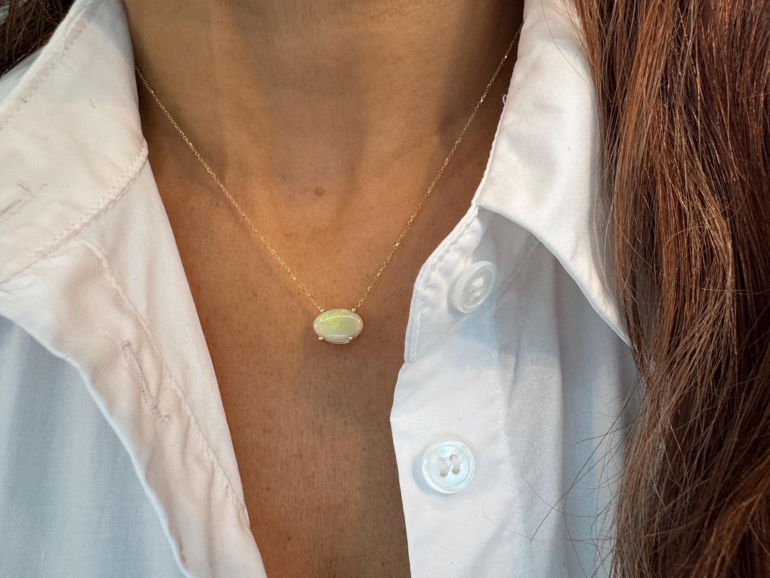 Elevate your everyday look with this breathtaking, handcrafted 14k Solid Gold Opal Necklace. Featuring a stunning, high-grade AAA quality natural Australian Opal, this piece is the ultimate blend of minimalist luxury and vibrant color. The perfect necklace to wear daily or to give as an unforgettable gift.