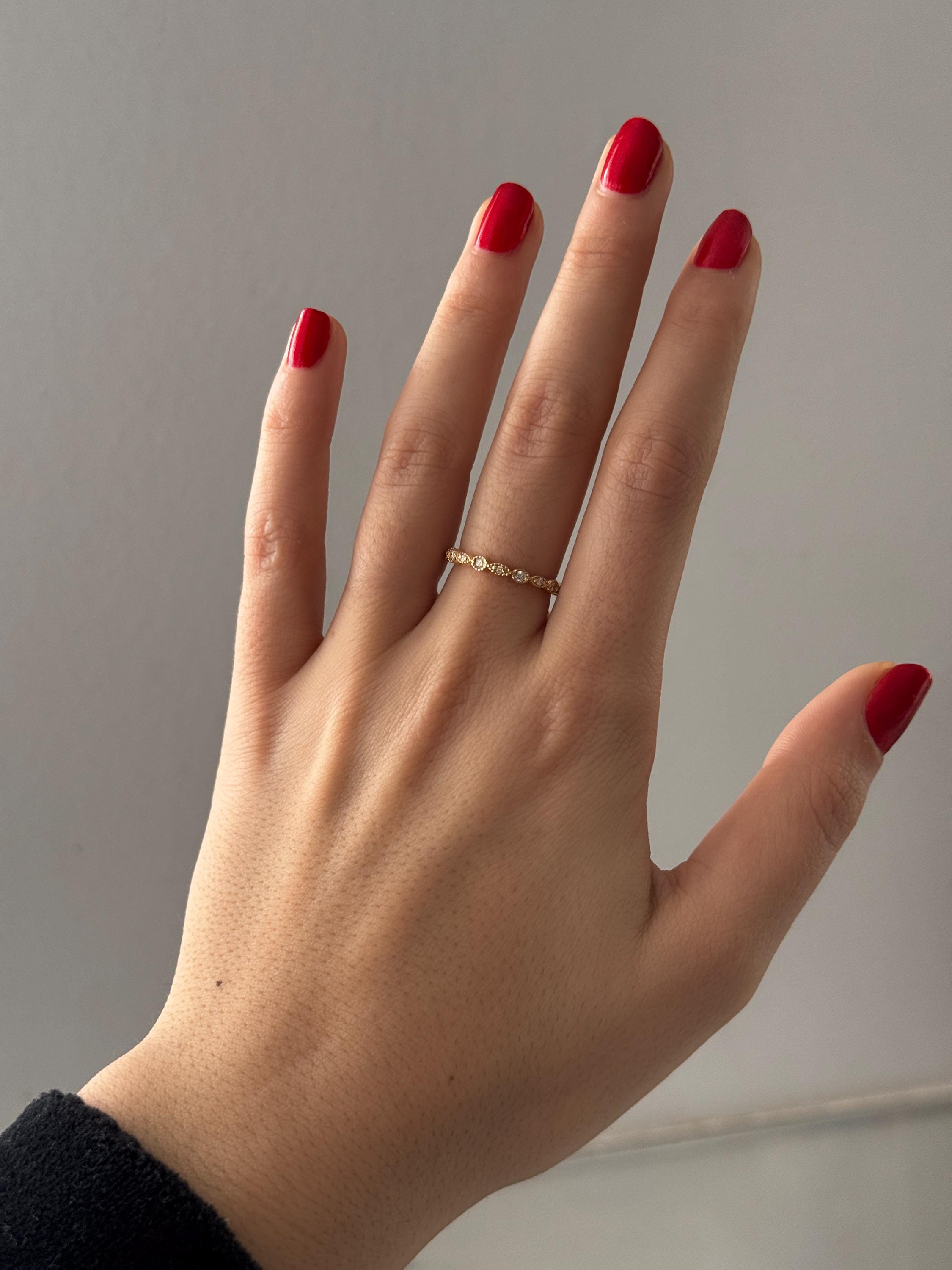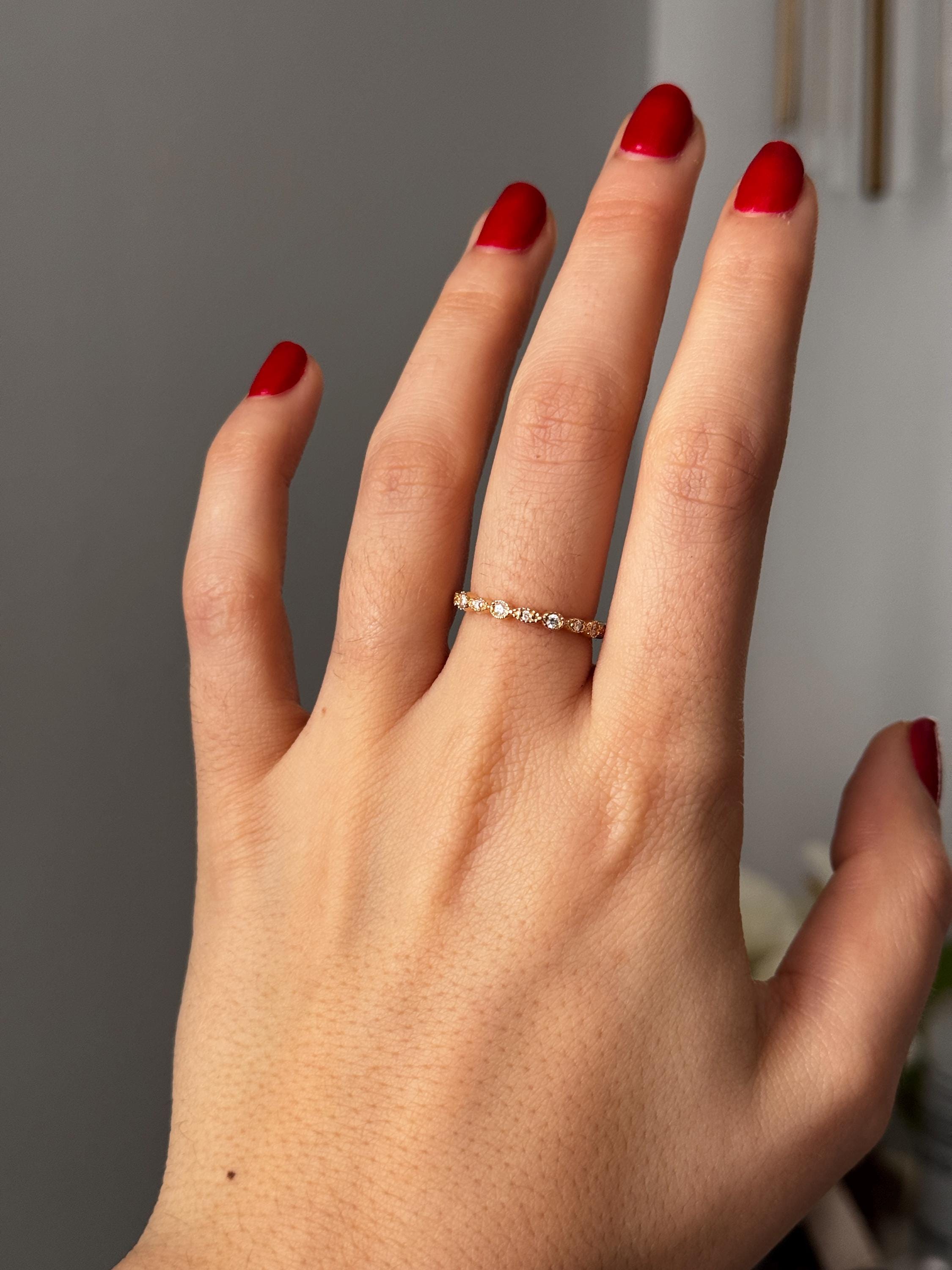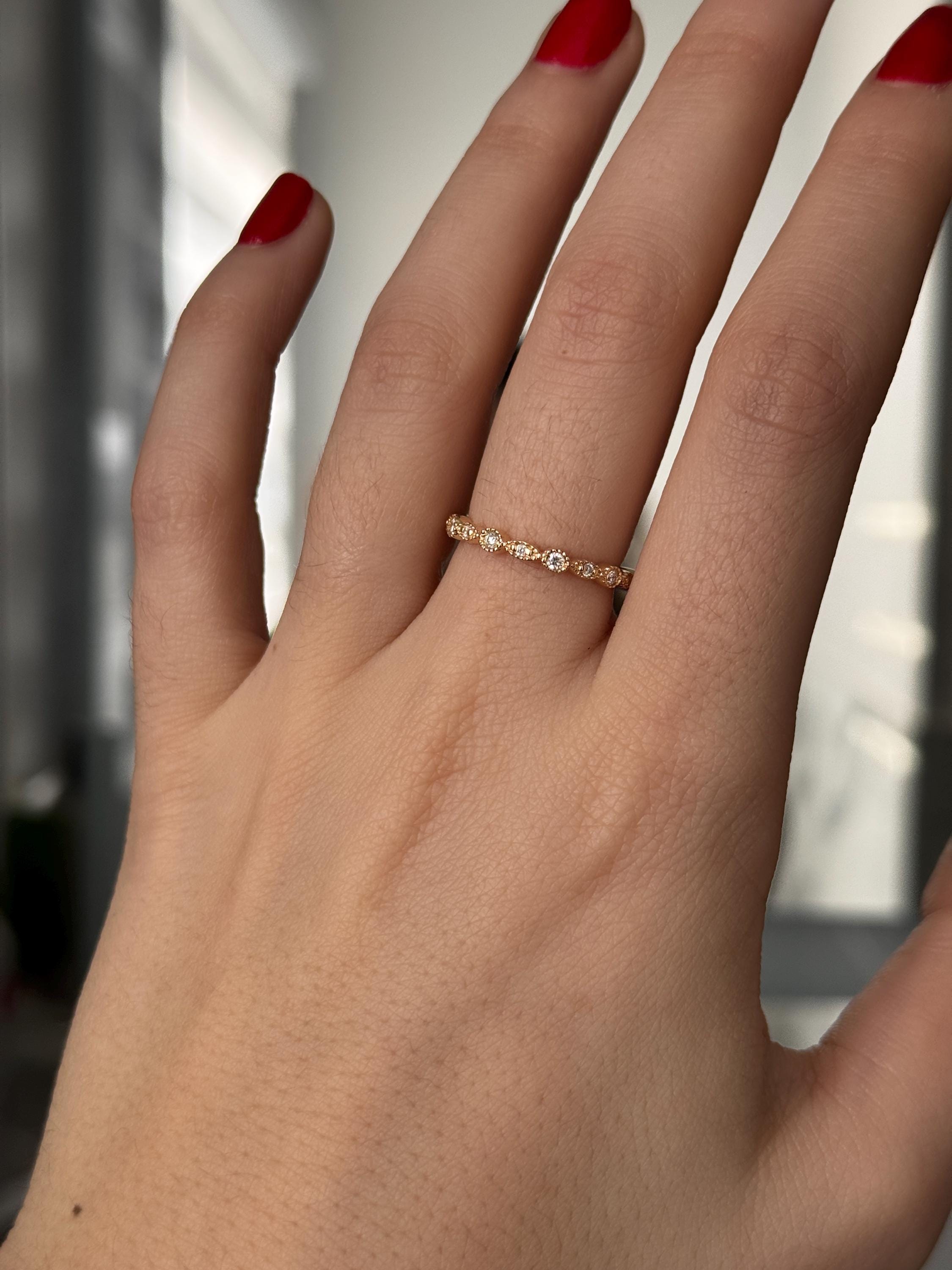Whether you are looking for a unique wedding band, a meaningful anniversary gift, or a sophisticated stacking ring, this 2.4 mm wide piece offers the perfect balance of daintiness and sparkle. Free shipping within the USA