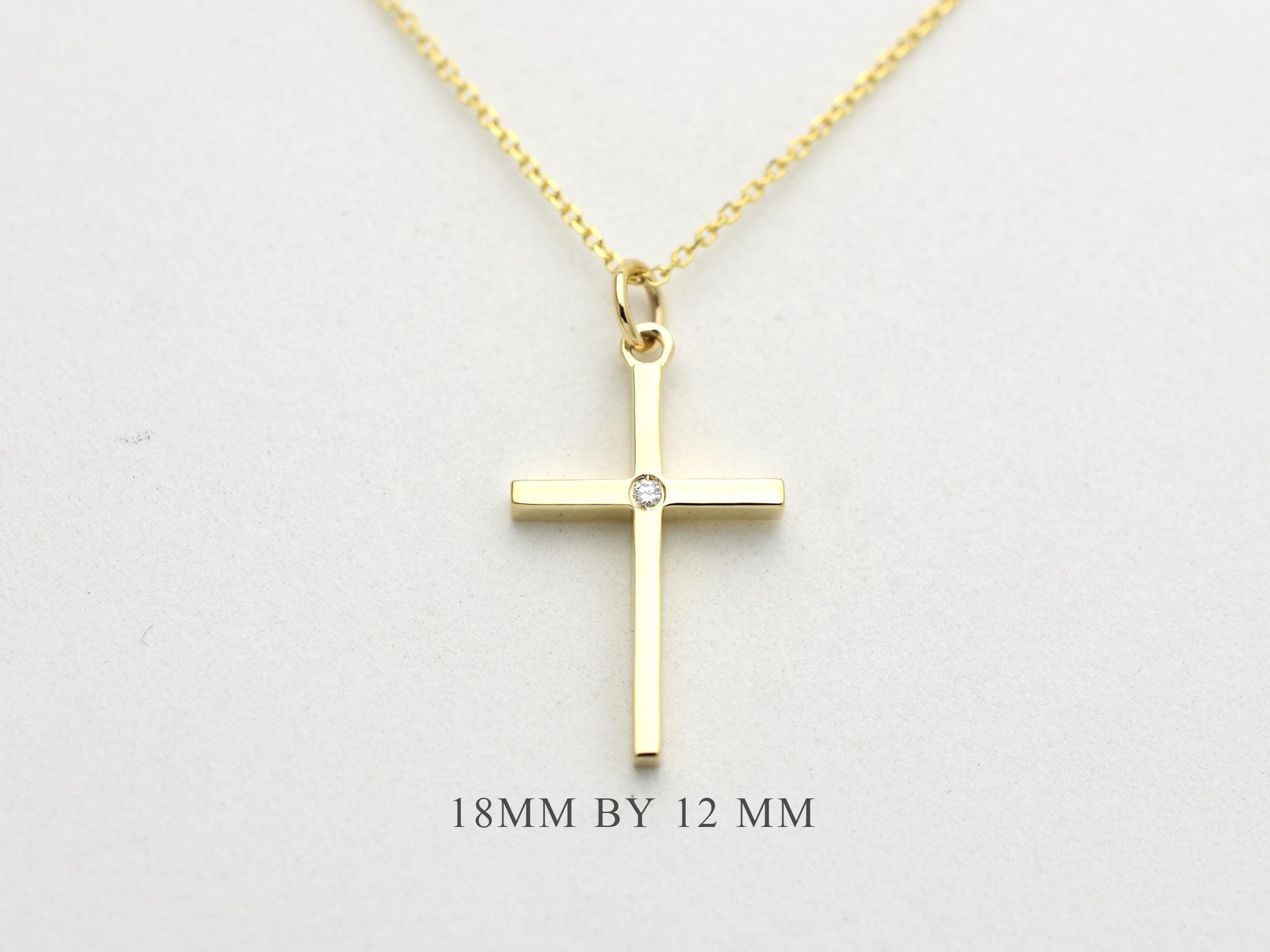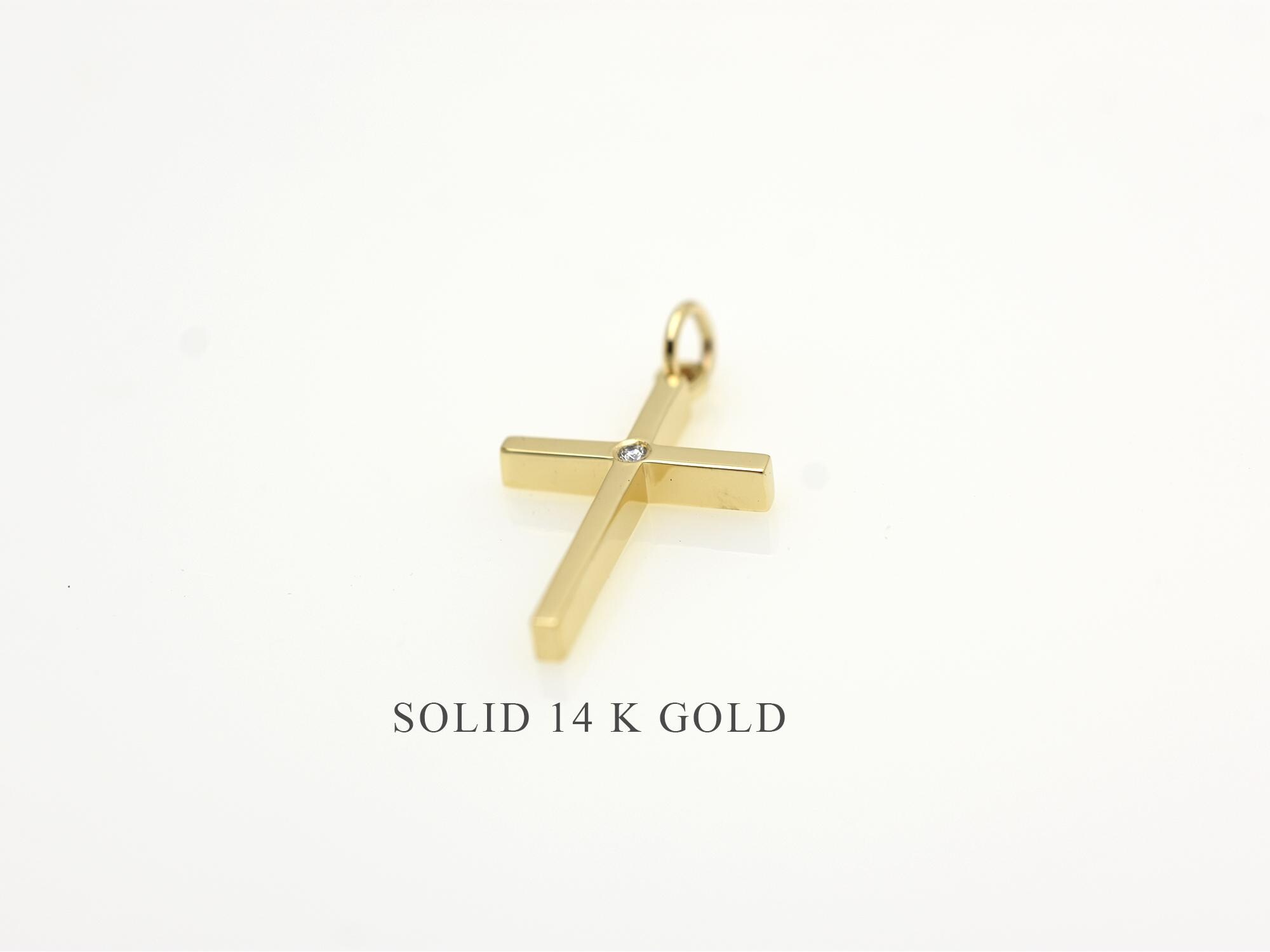 Elevate your everyday style with this elegantly crafted 14k Solid Gold Diamond Cross Necklace. Featuring a sleek, minimalist design, this pendant is centered with a single, sparkling genuine diamond for a touch of timeless sophistication.