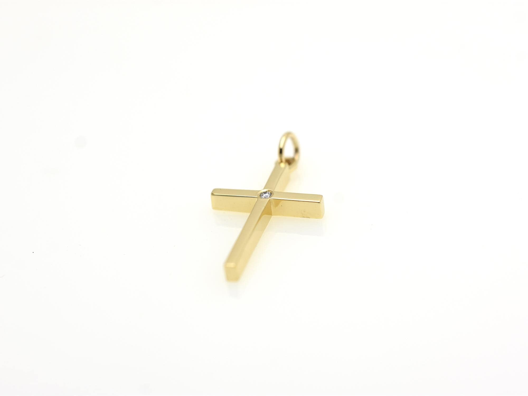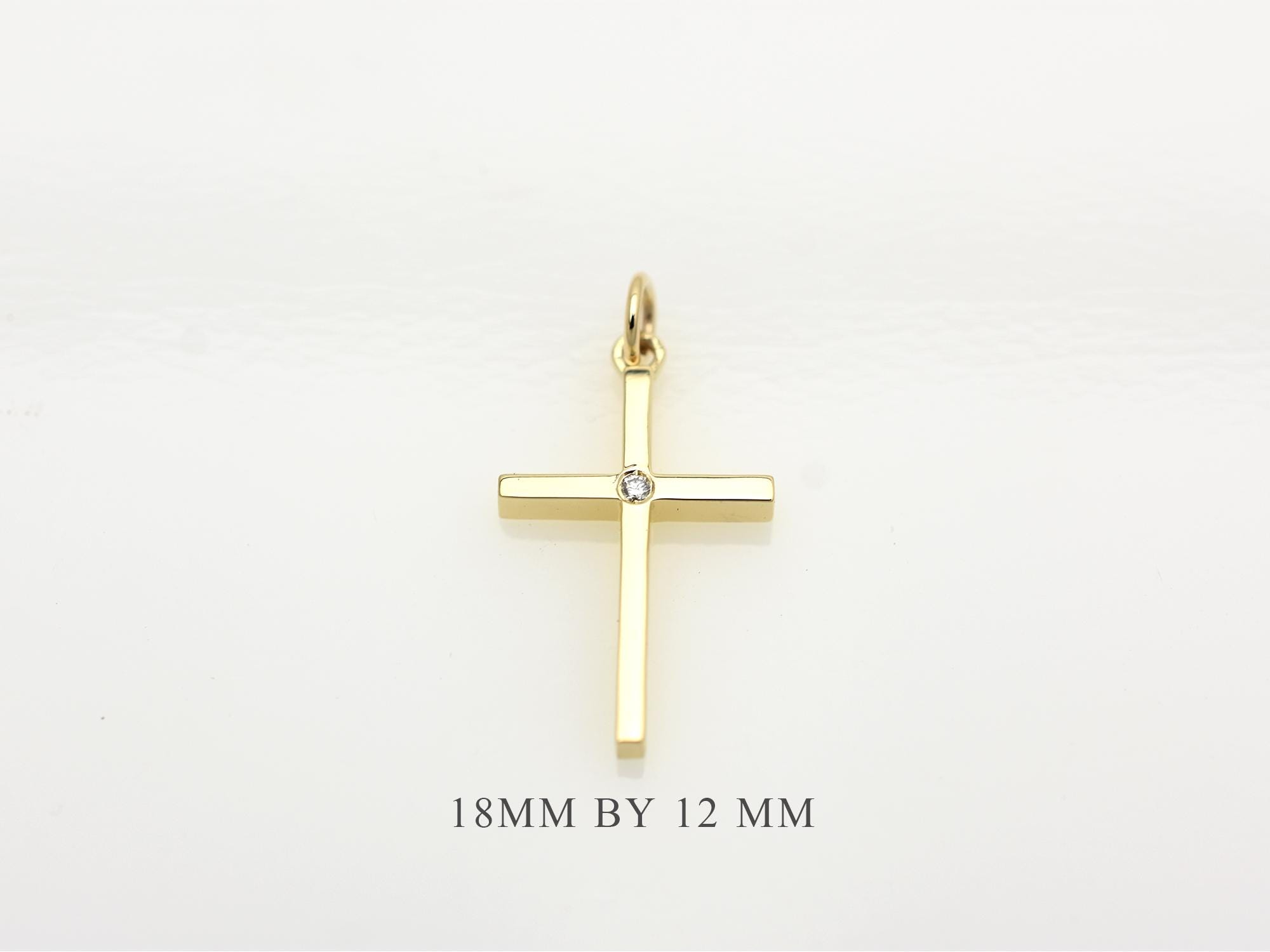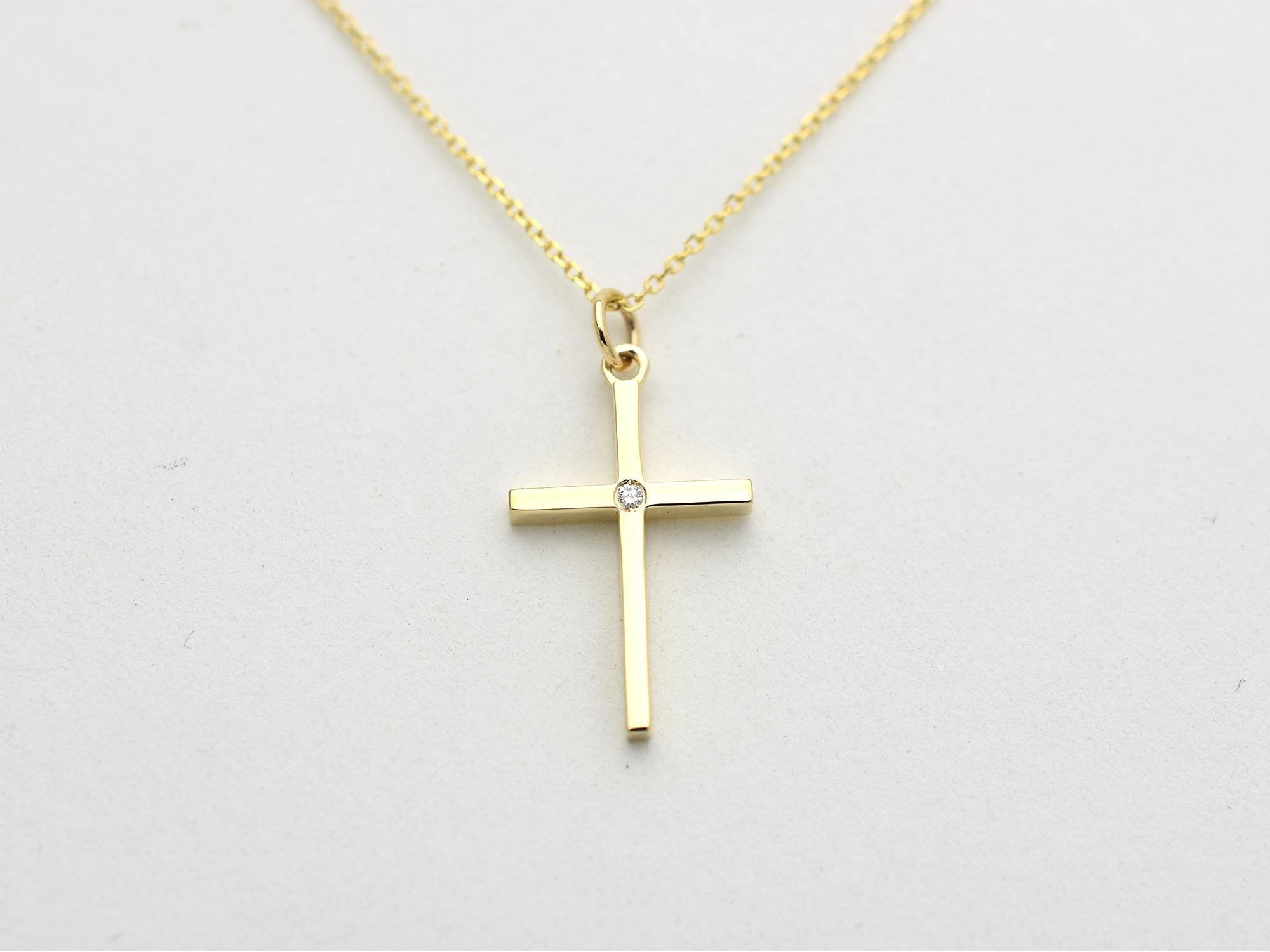 That is a beautiful, minimalist cross. Its clean lines and the single diamond accent make it a very versatile piece for everyday wear or special occasions like confirmations or weddings.