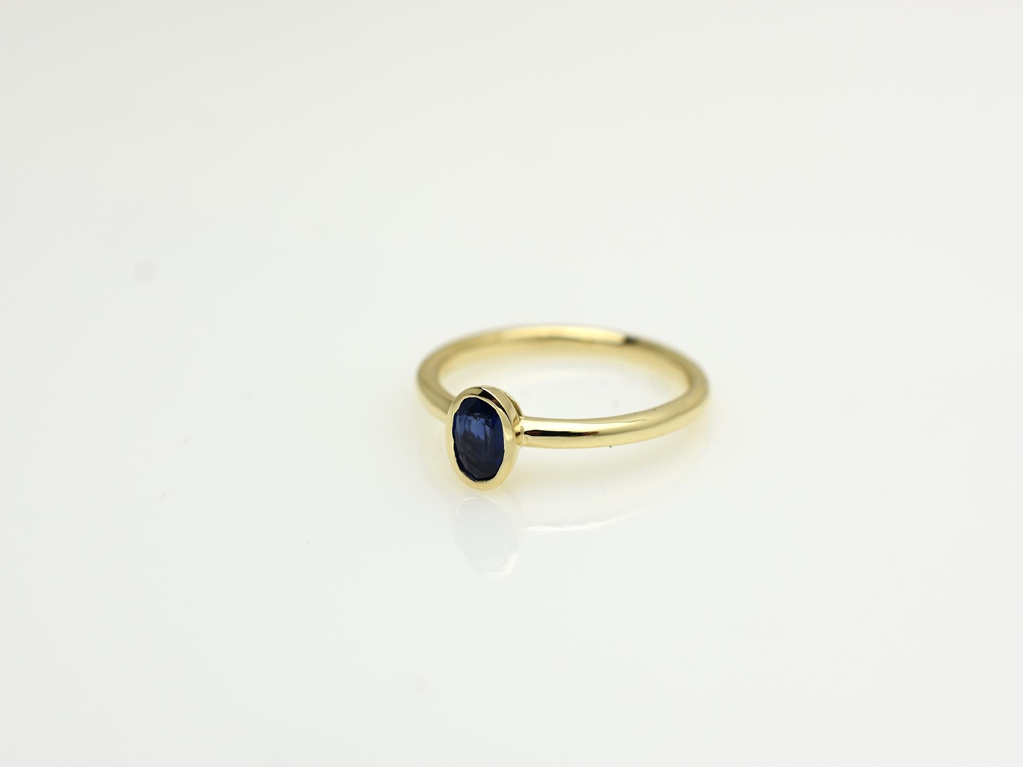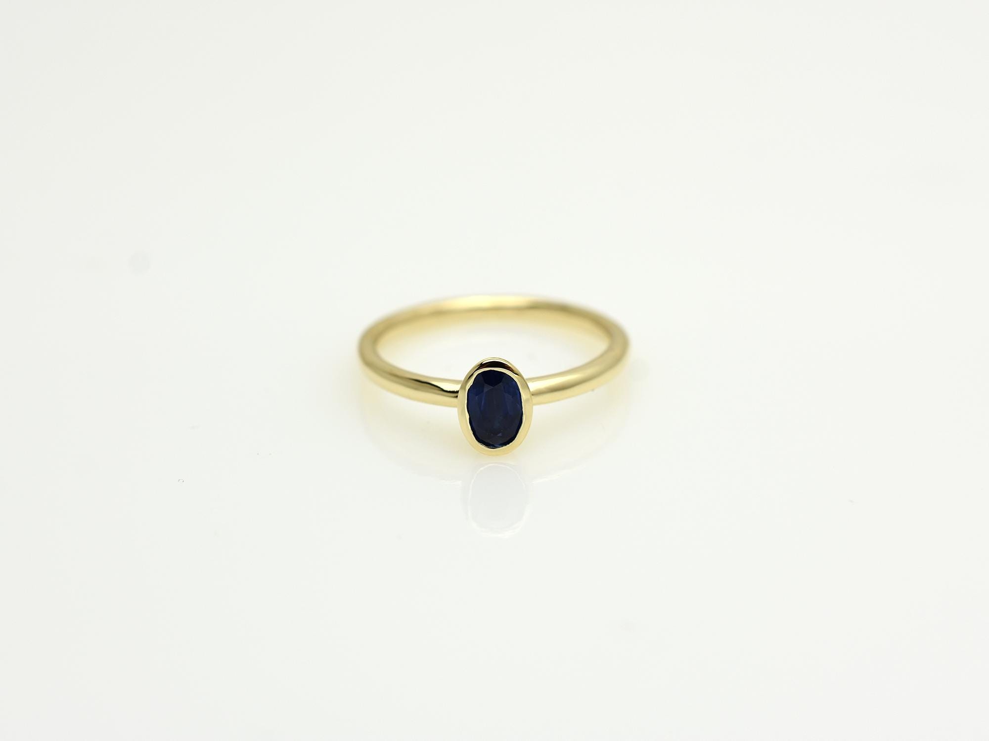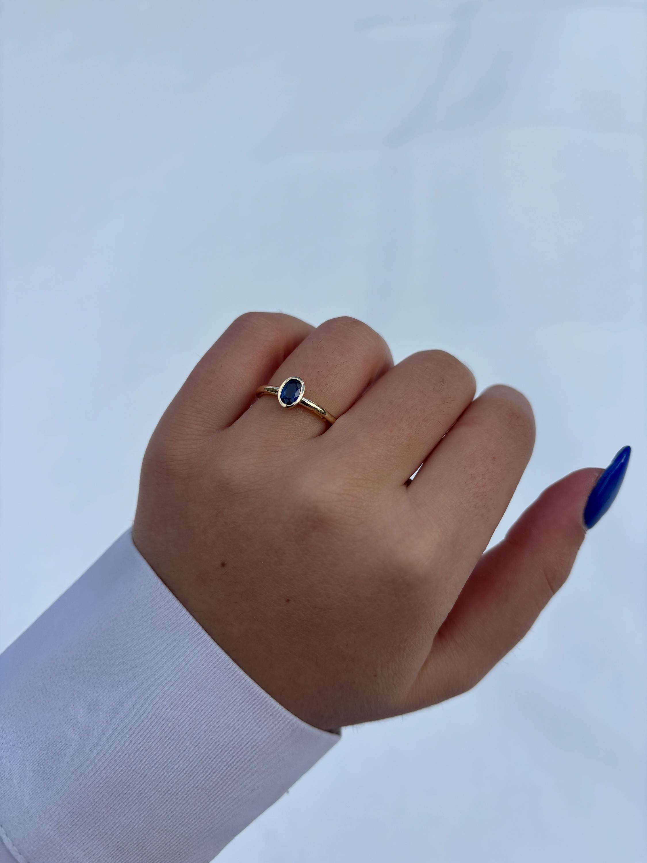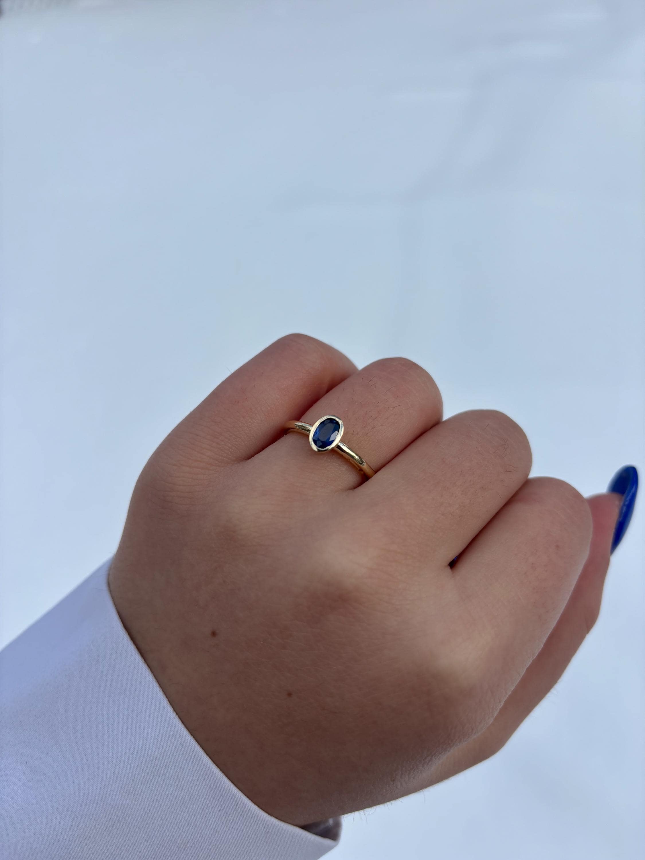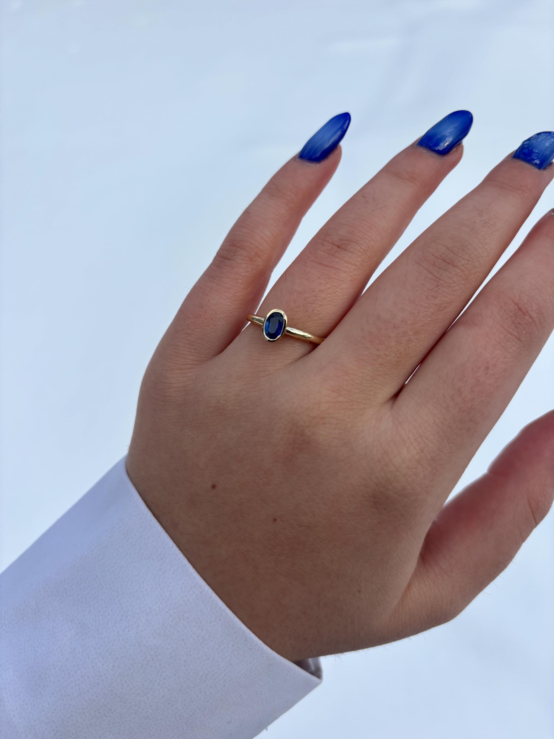 Elevate your everyday elegance with this sophisticated 14k Gold Oval Sapphire Solitaire Ring. Featuring a rich, deep blue sapphire nestled in a smooth bezel setting, this ring perfectly balances modern minimalism with timeless luxury.