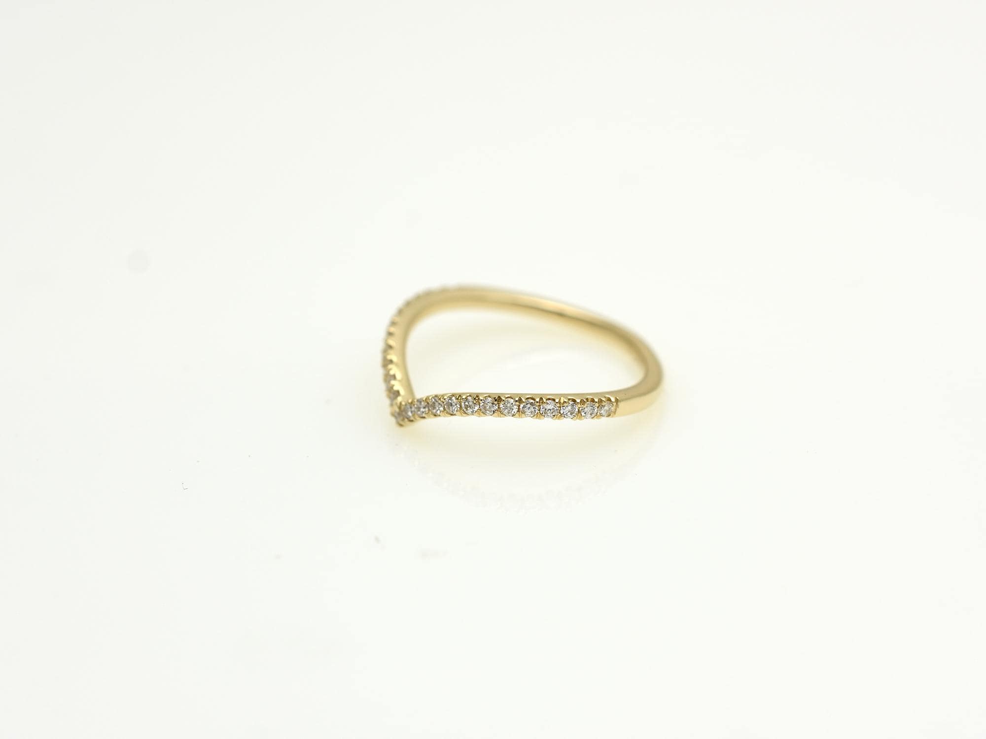 • Perfect for Stacking: The curved "V" shape is designed to fit snugly against solitaire or halo engagement rings.