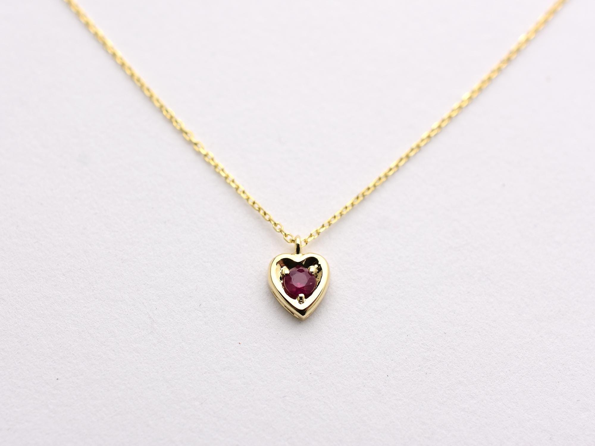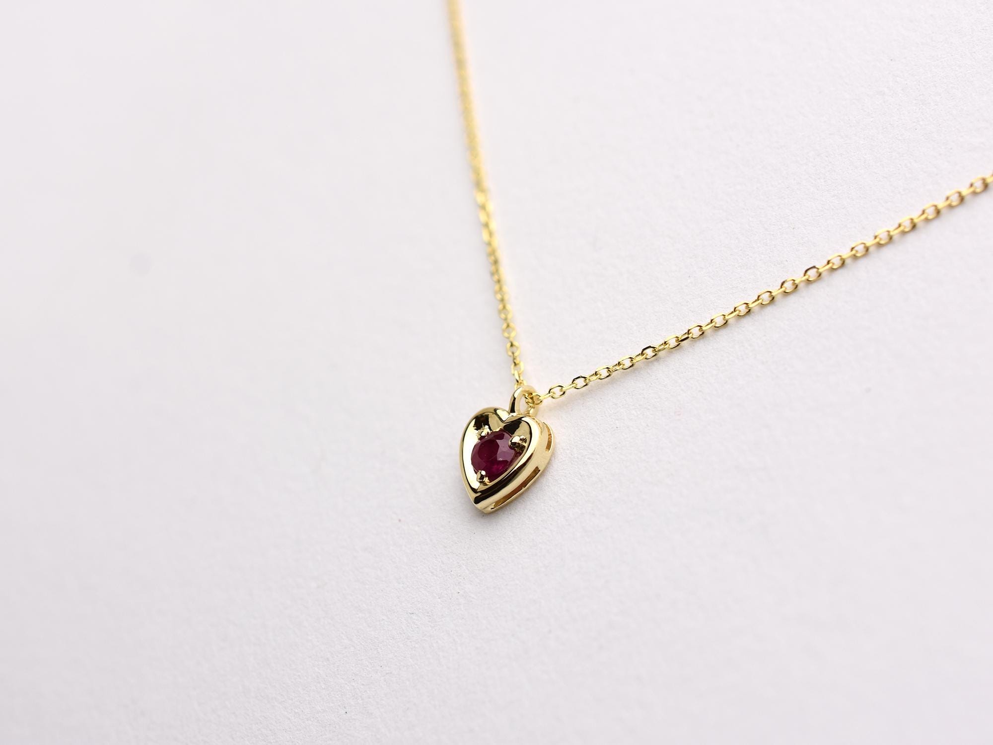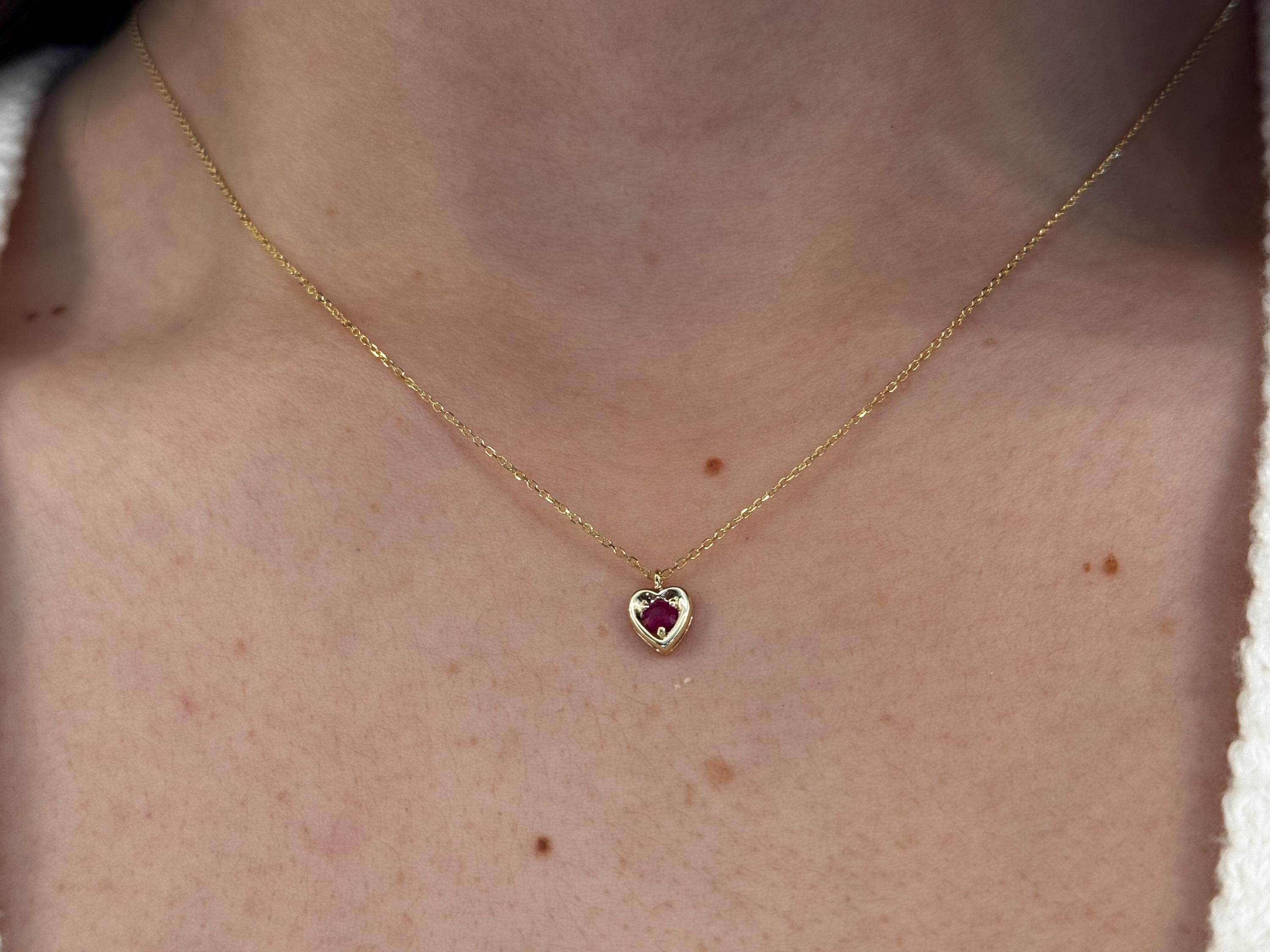Ruby Necklace/ 14k Gold Heart Necklace/ Mini Heart Necklace/ Dainty Heart Necklace/ Gemstone Necklace/ July Birthstone/ Birthday Gift/ Valentines Gift/ Delicate Ruby Necklace