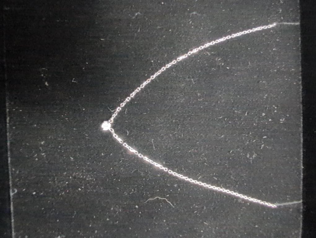 THE CHAIN IS A DIAMOND CUT CABLE LINK CHAIN EACH CHAIN LINK WIDTH IS 0.8 mm.