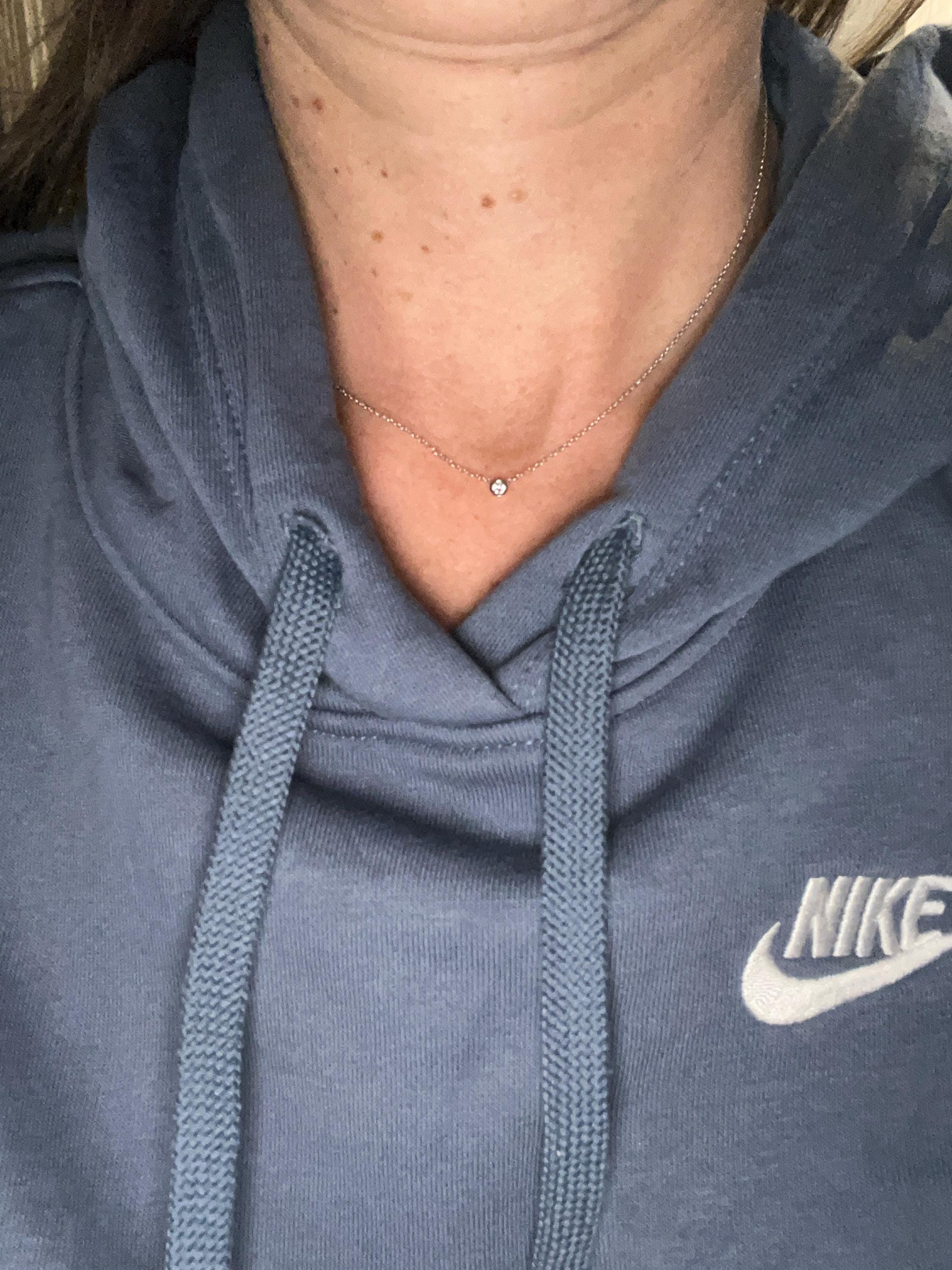 Exactly as described and even better in person! The chain is sparkly and diamond beautiful. A timeless piece for everyday. Seller was excellent with communication and answered all the questions I had. Highly recommend!