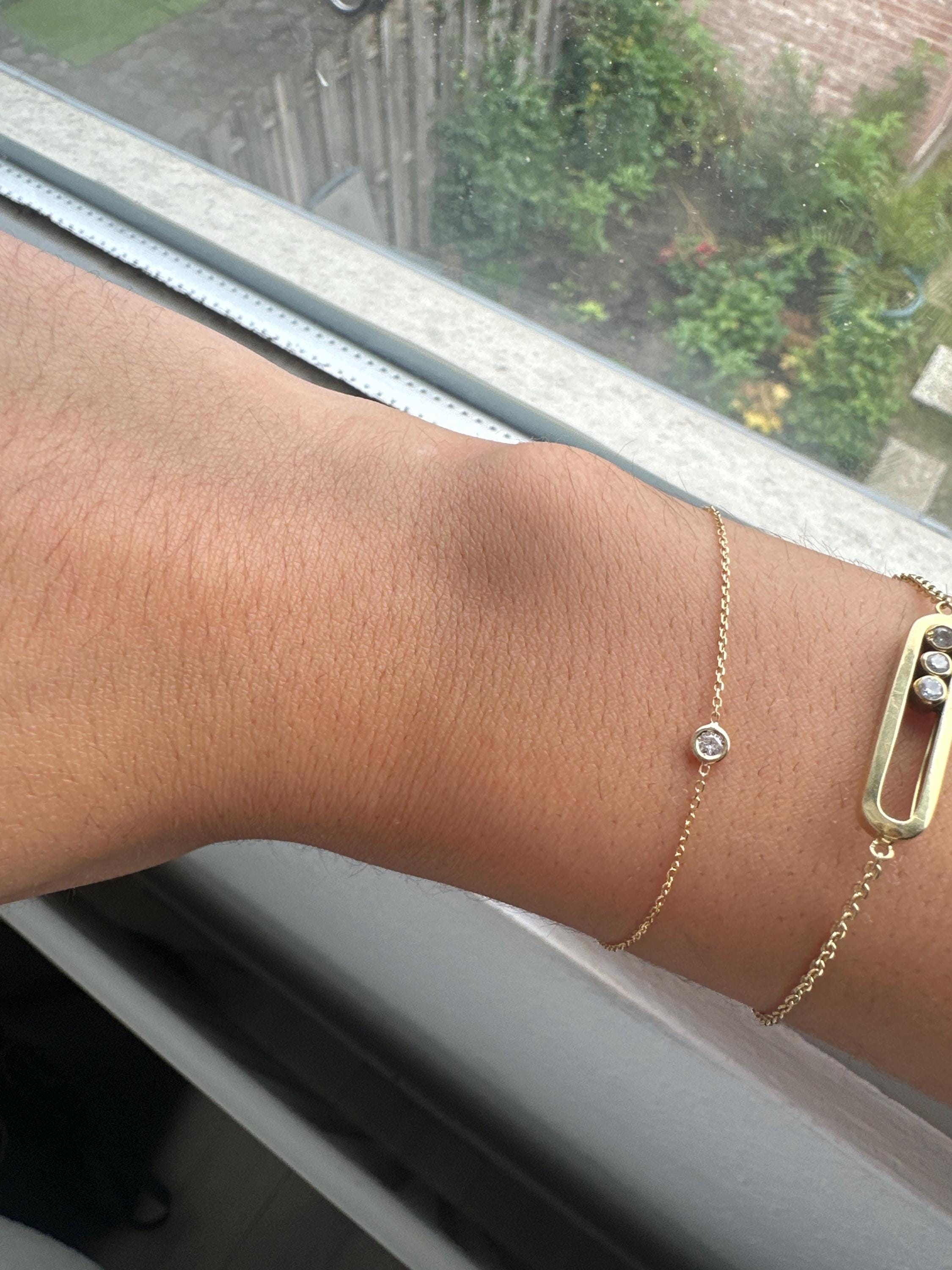 Fits my wrist exactly how I wanted and is lightweight! Just the right sparkle; minimalist style! An alternative to a Tiffany-Diamonds by the yard bracelet! I received compliments first week wearing it! Sparkly and well-made! I am pleased with my order!
